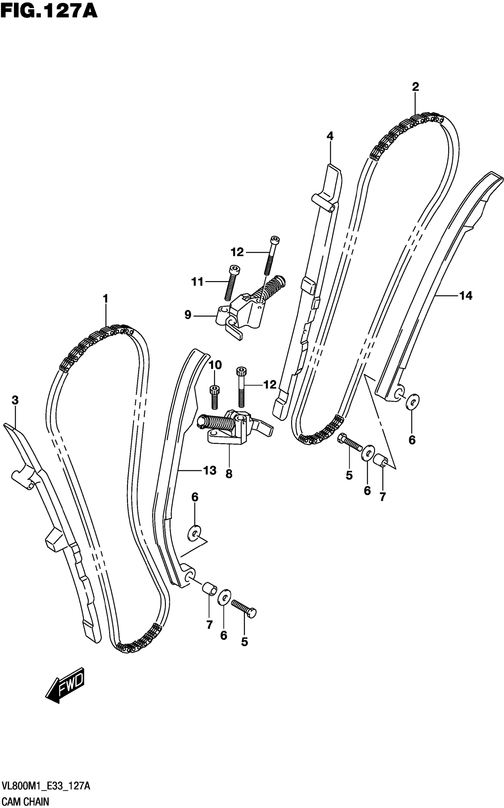 Suzuki VL800M1 (2021) CAM CHAIN Diagram
