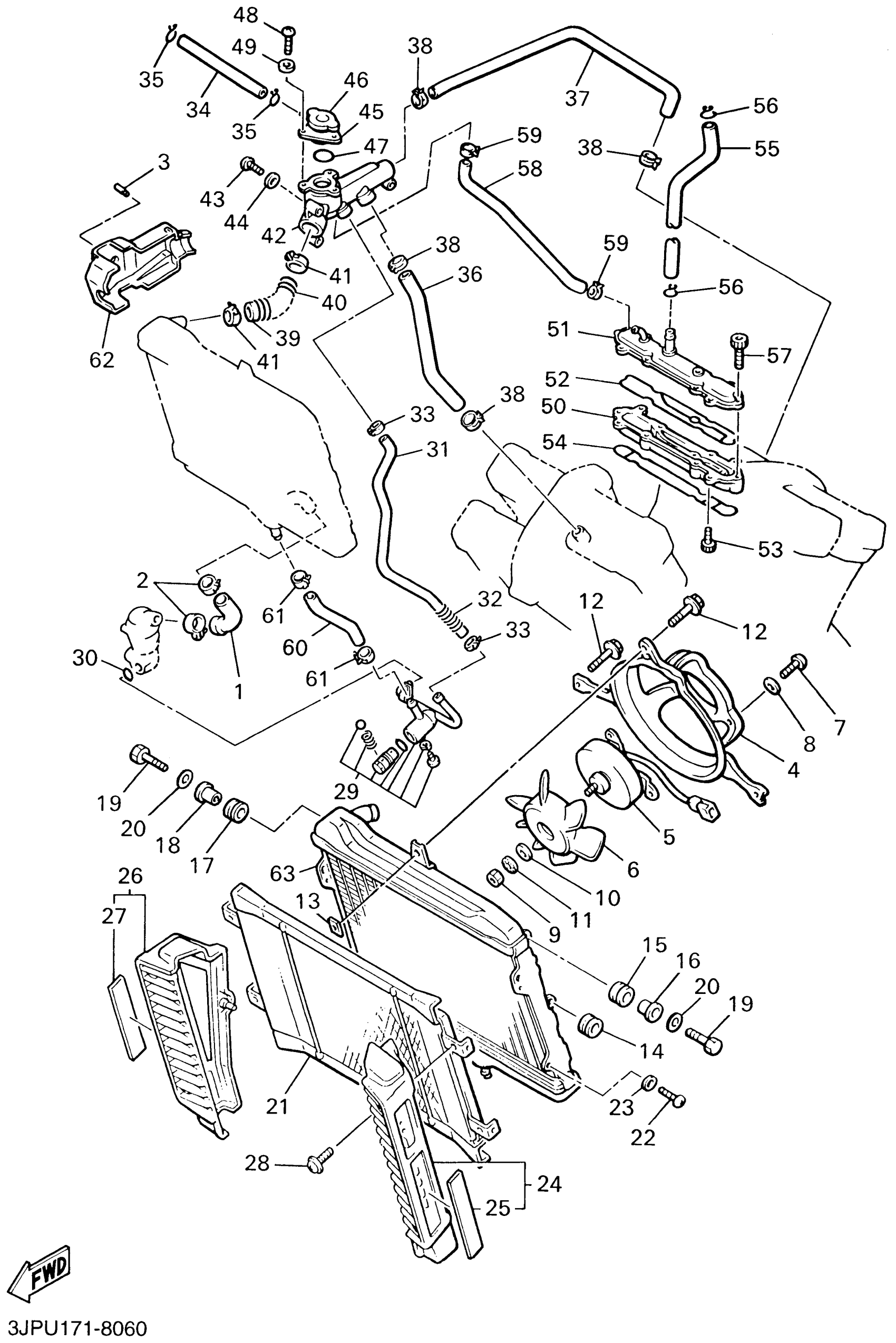 Yamaha VMX1200PC (V-MAX CA) 5GKA 2002 RADIATOR HOSE Diagram