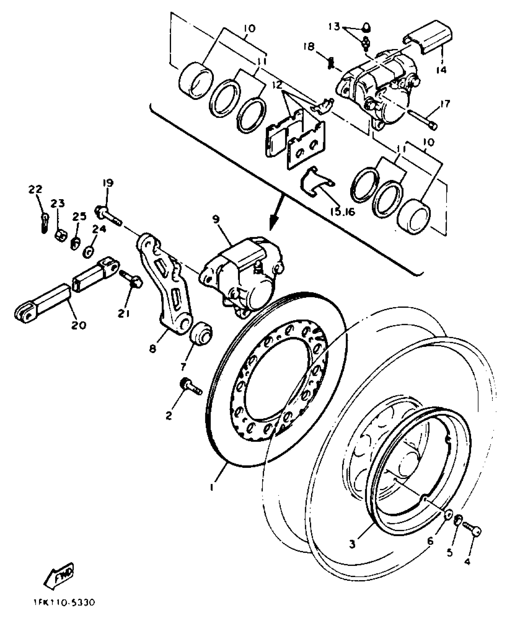 Yamaha VMX12BC (V-MAX 1200 CA) 3JP8 1991 REAR BRAKE CALIPER Diagram