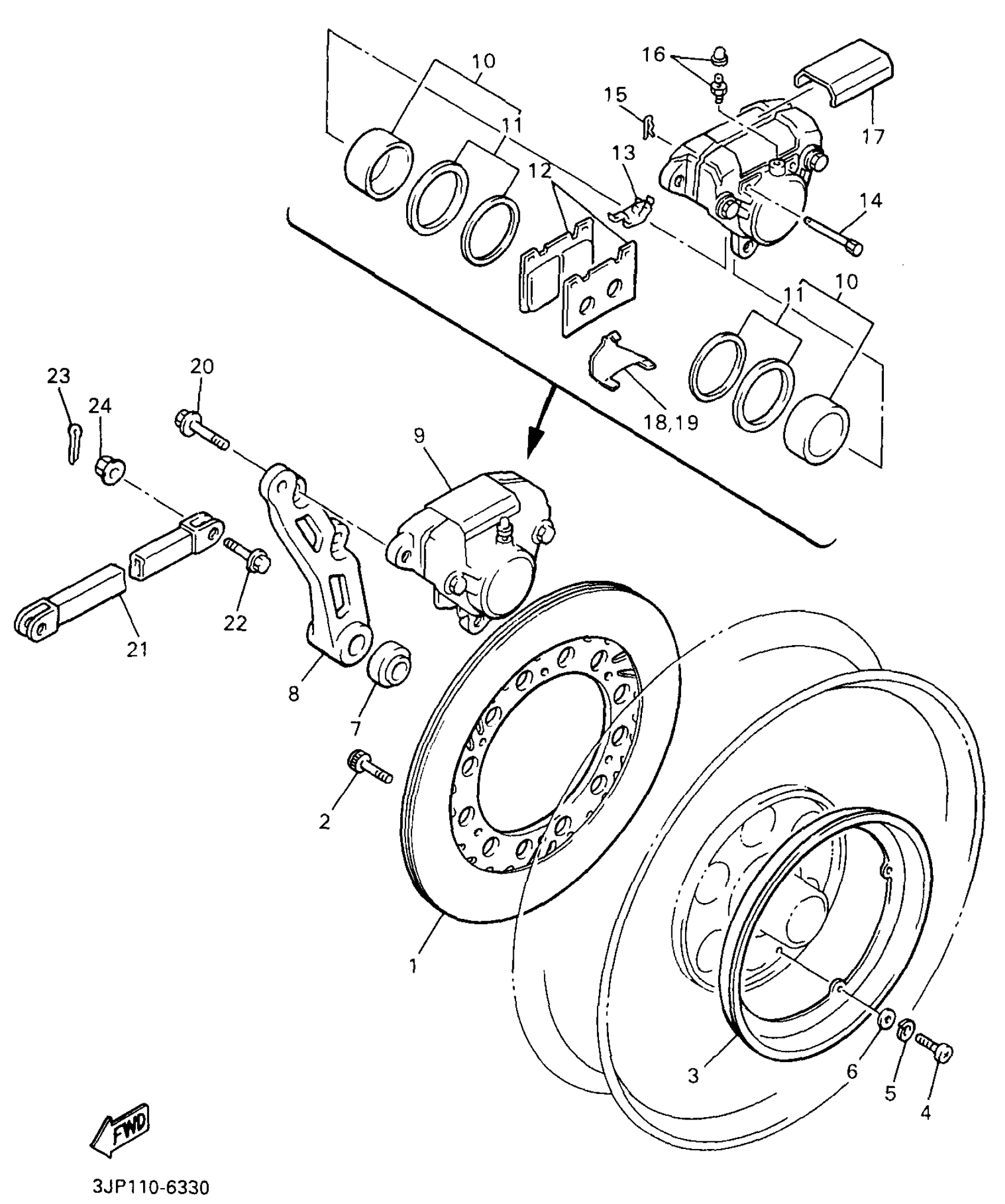 Yamaha VMX12HC (V-MAX 1200 CA) 3JPN 1996 REAR BRAKE CALIPER Diagram