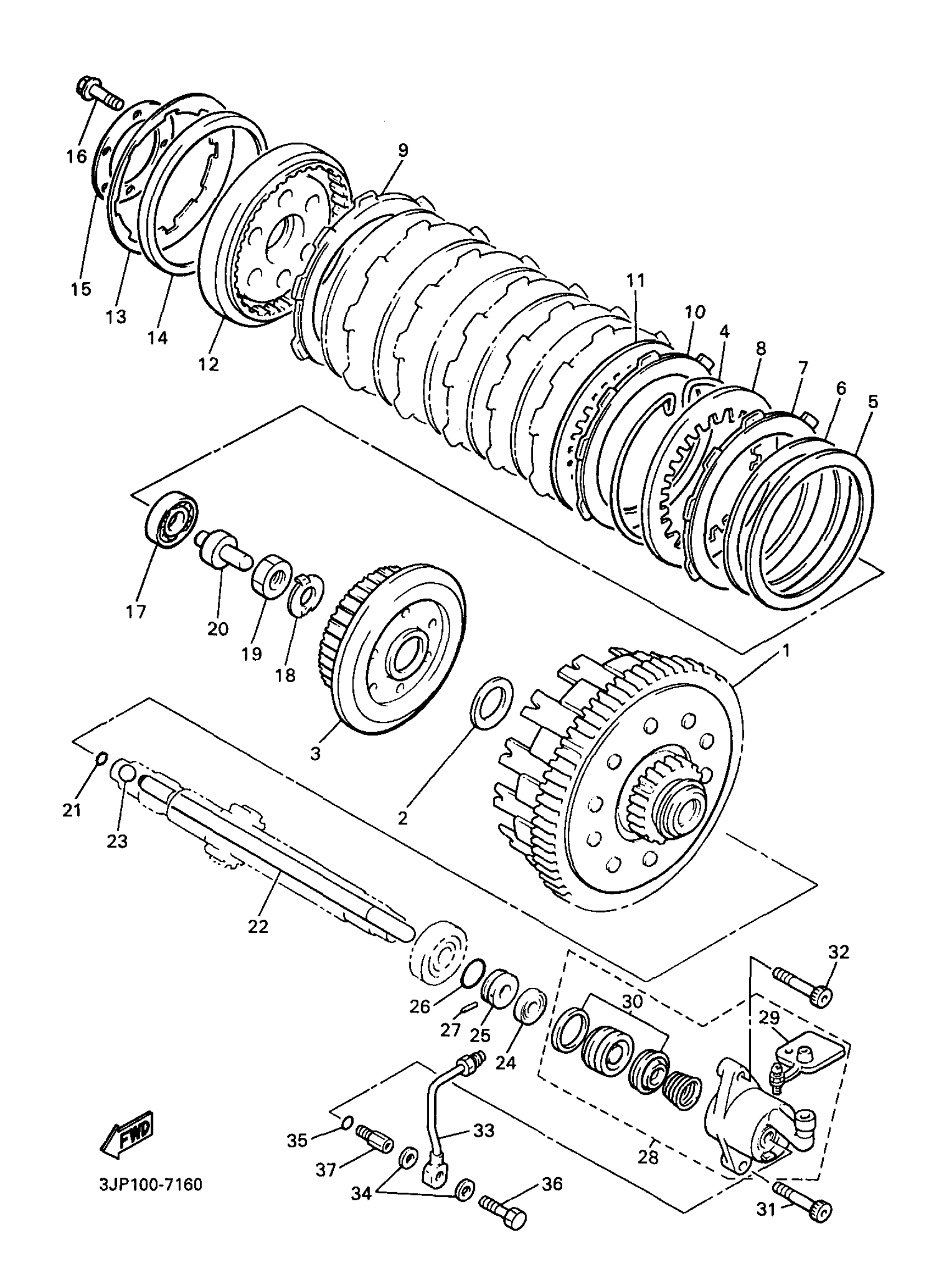 Yamaha VMX12JC (V-MAX 1200 CA) 3JPT 1997 CLUTCH Diagram
