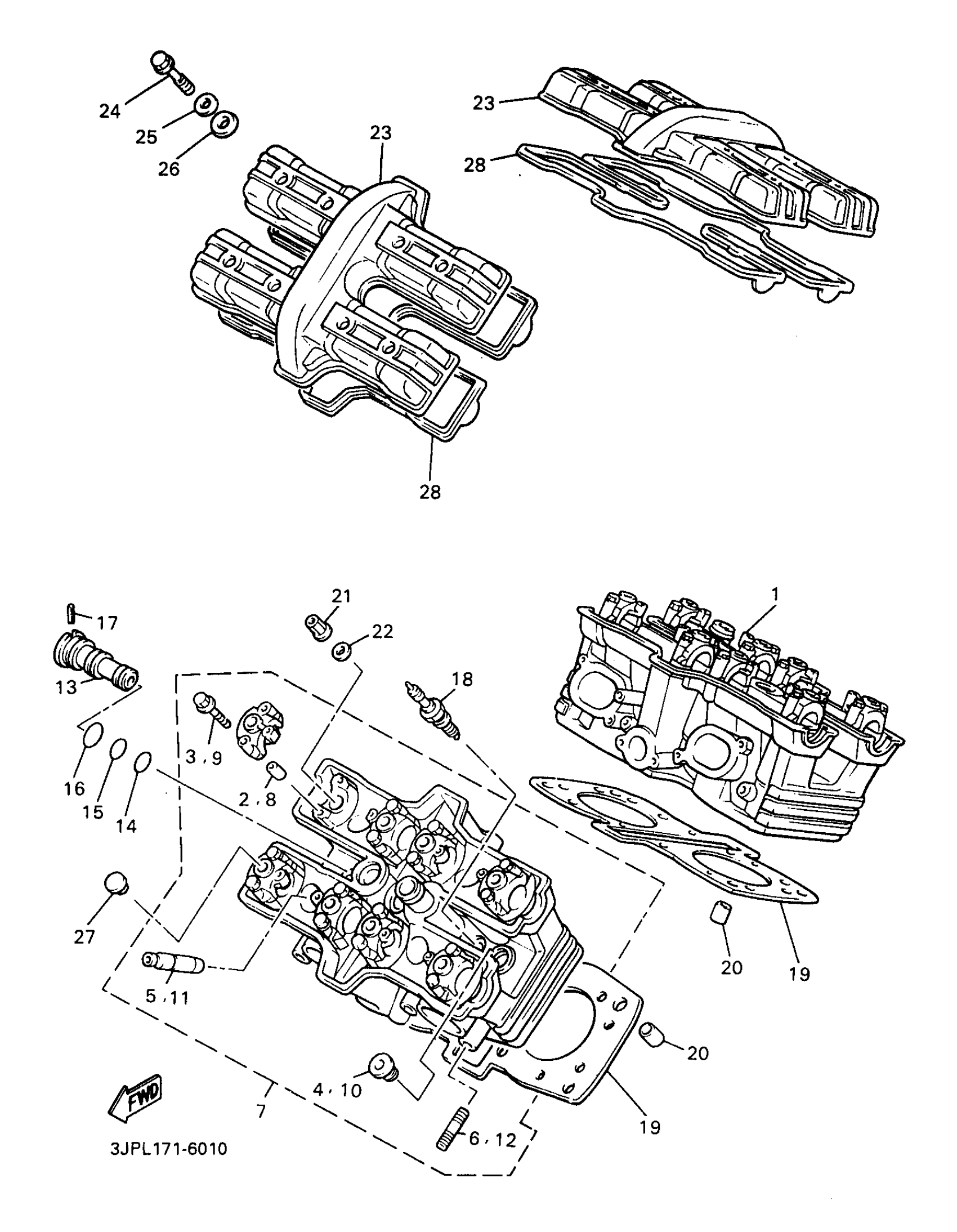Yamaha VMX12JC (V-MAX 1200 CA) 3JPT 1997 CYLINDER HEAD Diagram