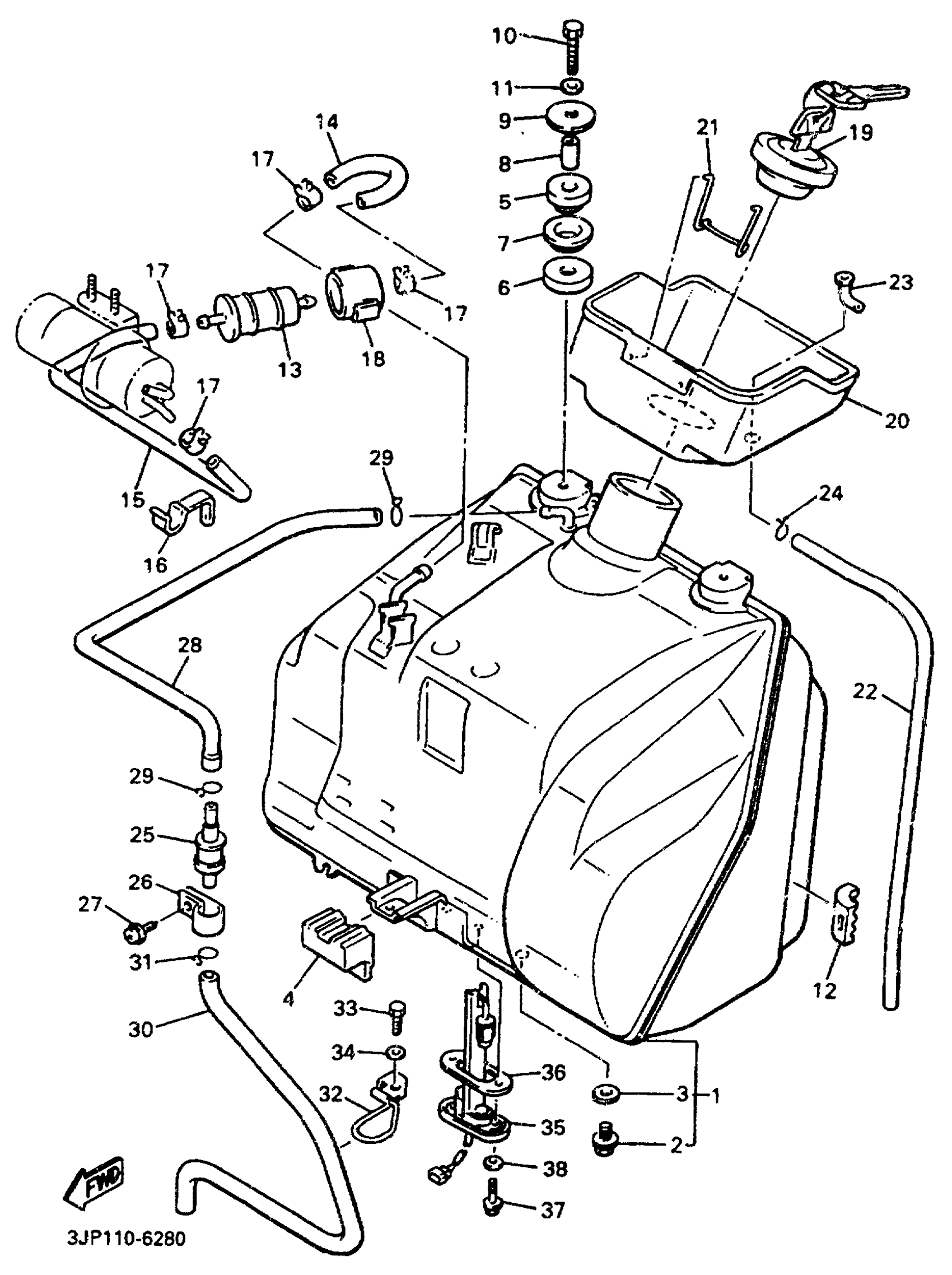 Yamaha VMX12JC (V-MAX 1200 CA) 3JPT 1997 FUEL TANK NON CALIFORNIA Diagram