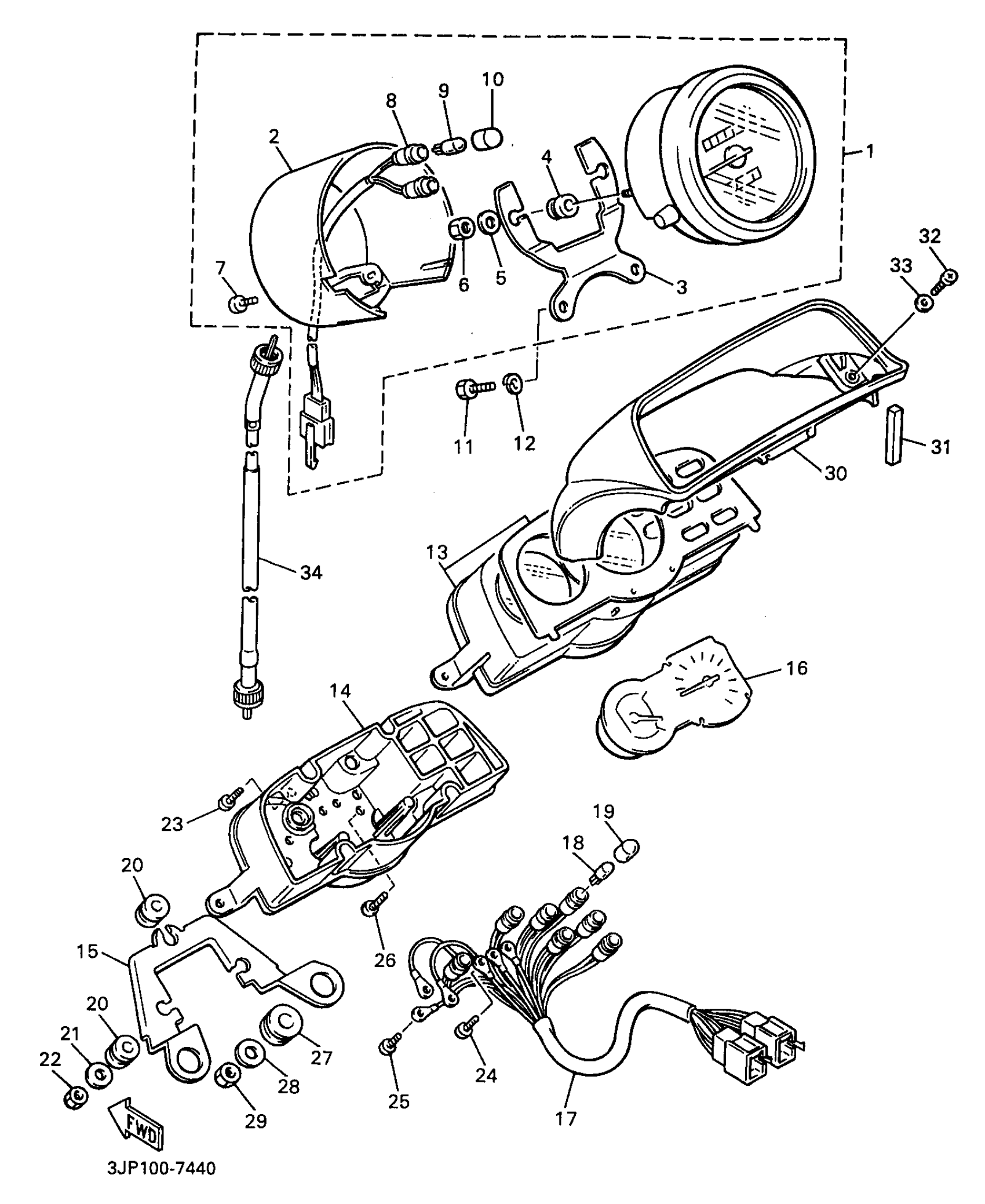 Yamaha VMX12JC (V-MAX 1200 CA) 3JPT 1997 METER Diagram