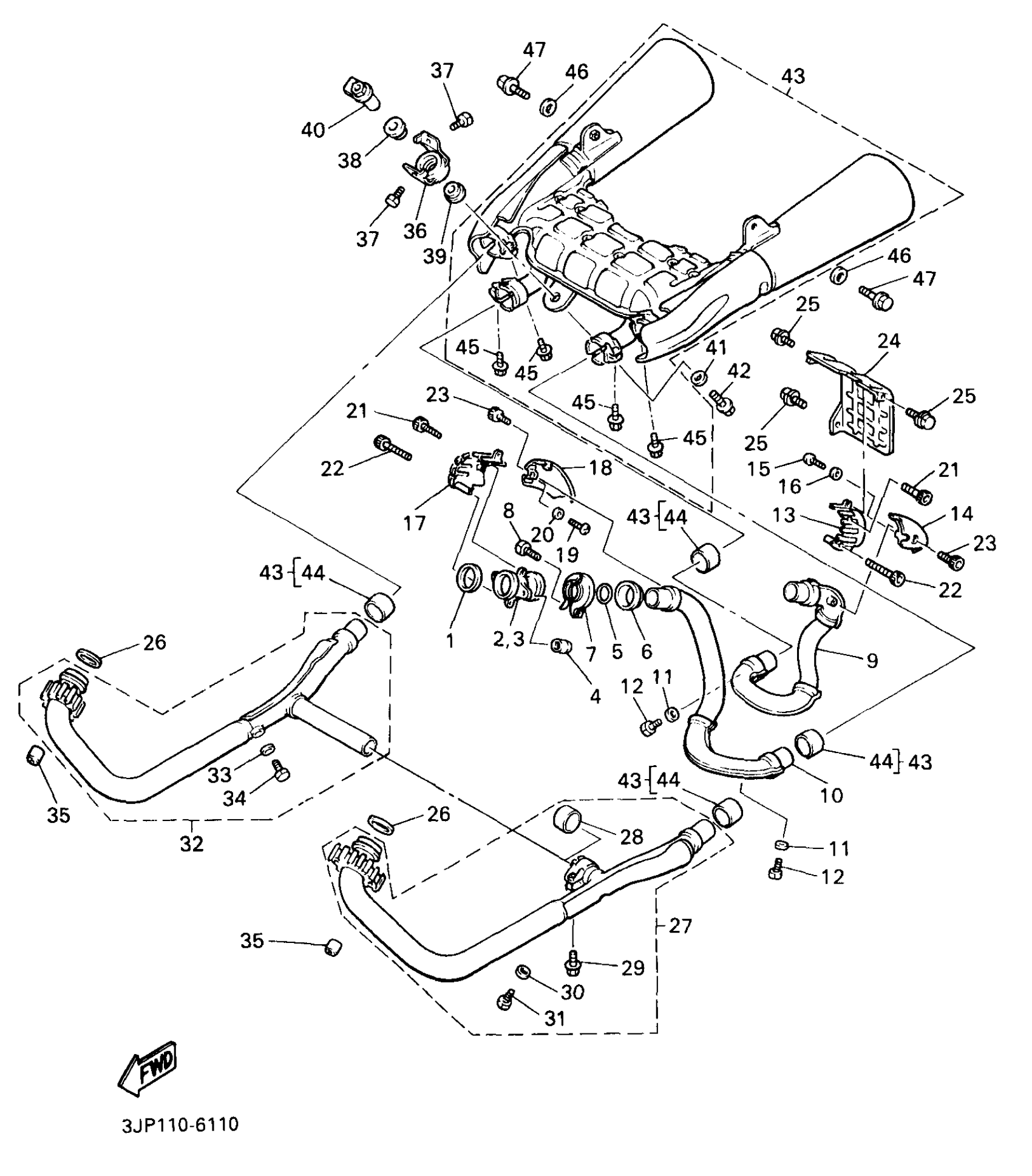 Yamaha VMX12KC (V-MAX 1200 CA) 3JPW 1998 EXHAUST Diagram