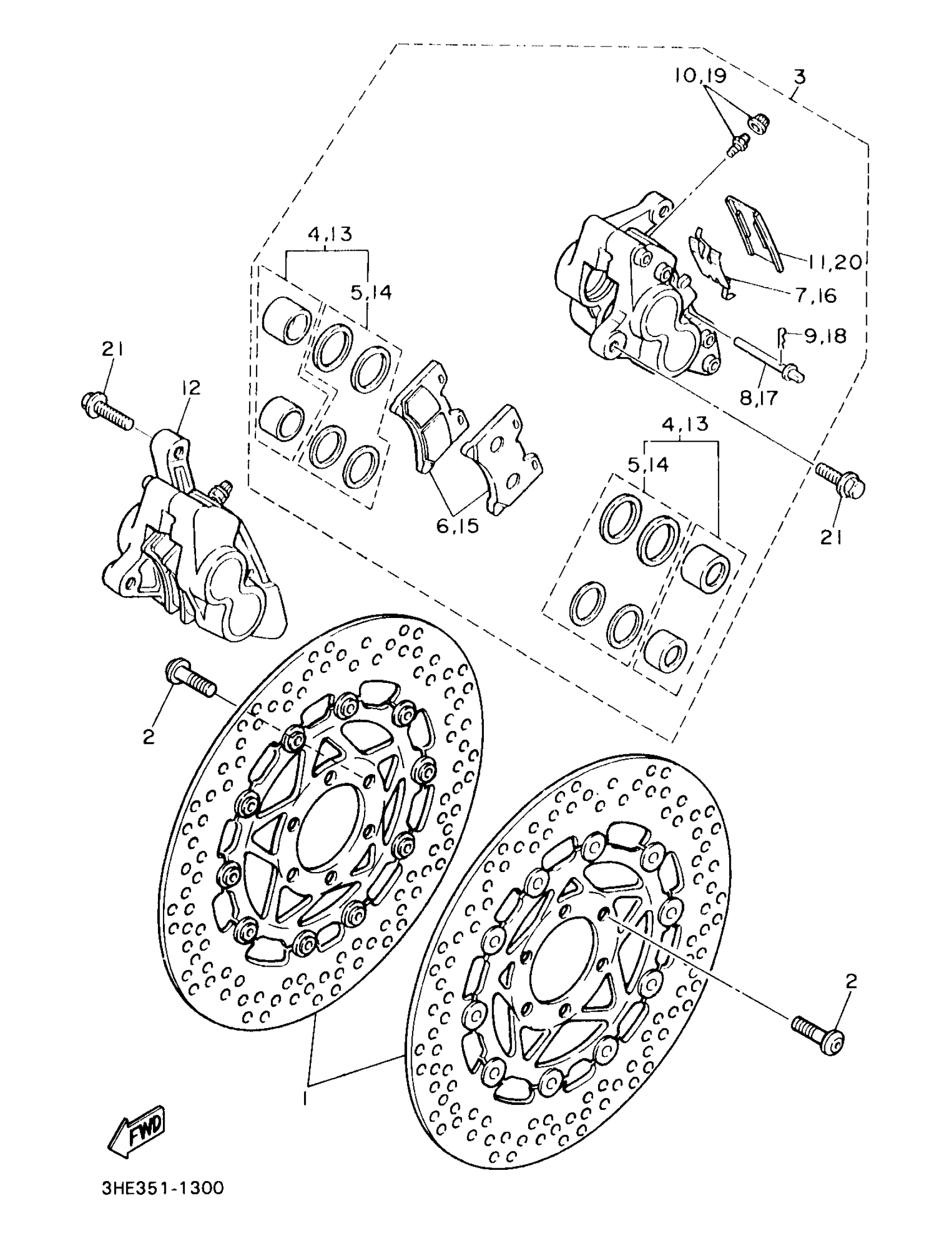 Yamaha VMX12KC (V-MAX 1200 CA) 3JPW 1998 FRONT BRAKE CALIPER Diagram