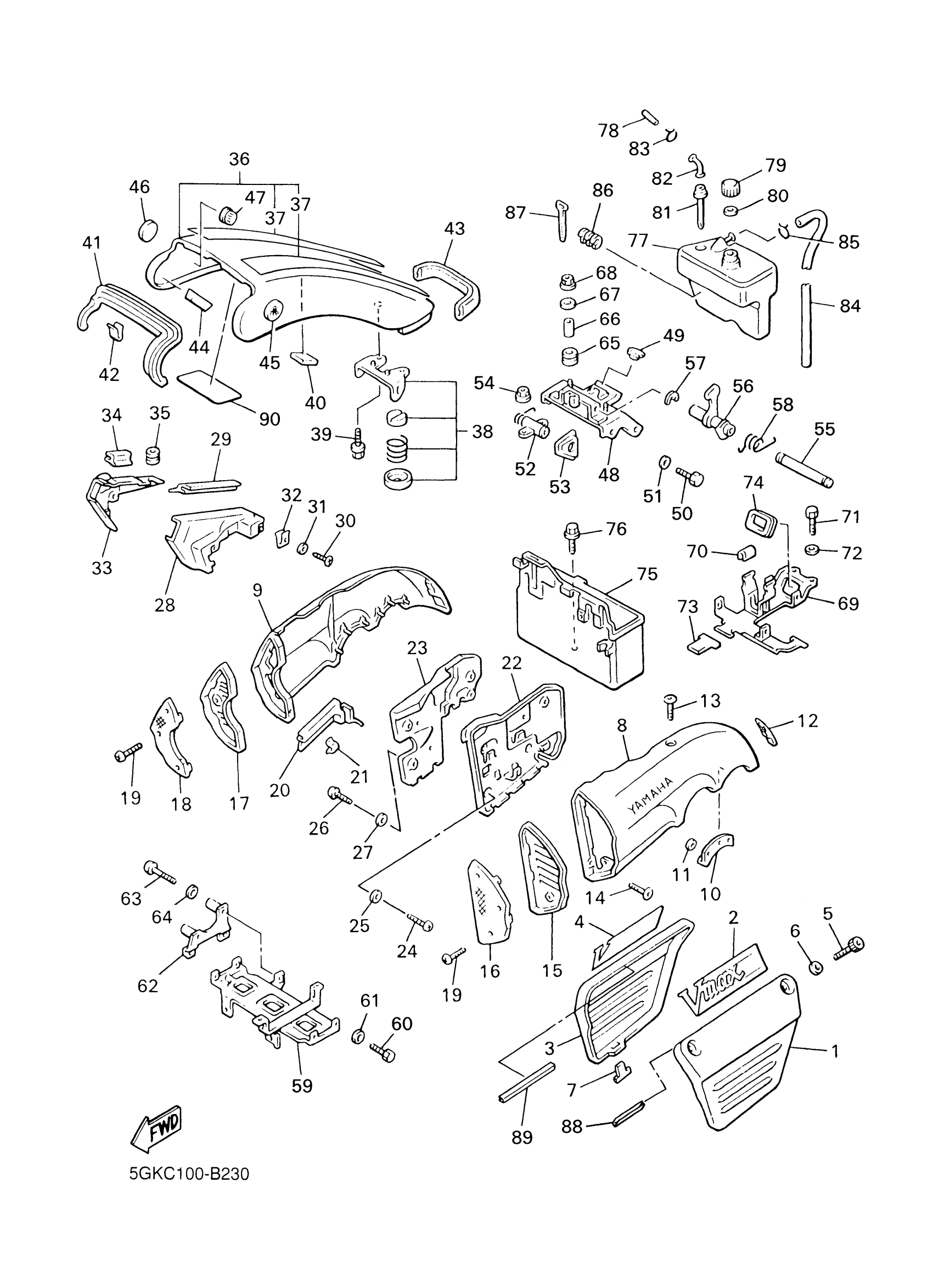 Yamaha VMX12SC1 (V-MAX CA) 5GKM 2004 SIDE COVER Diagram