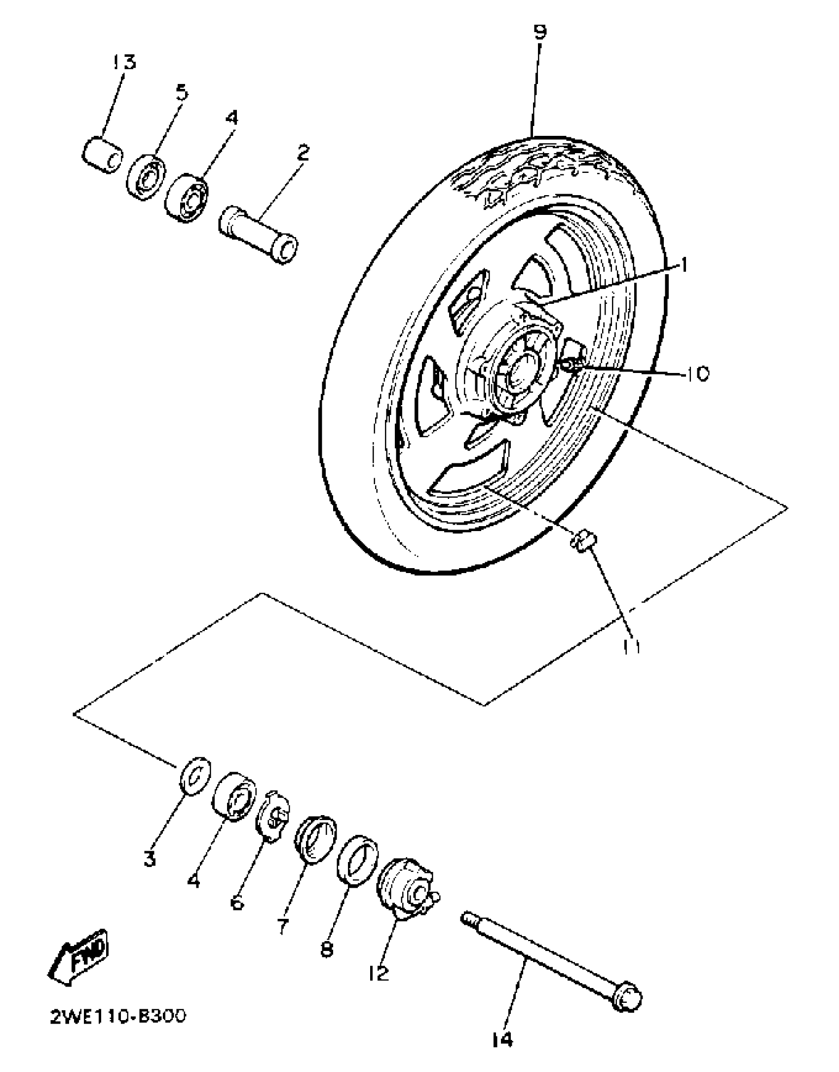 Yamaha VMX12UC (V-MAX 1200 CA) 2WF 1988 FRONT WHEEL Diagram