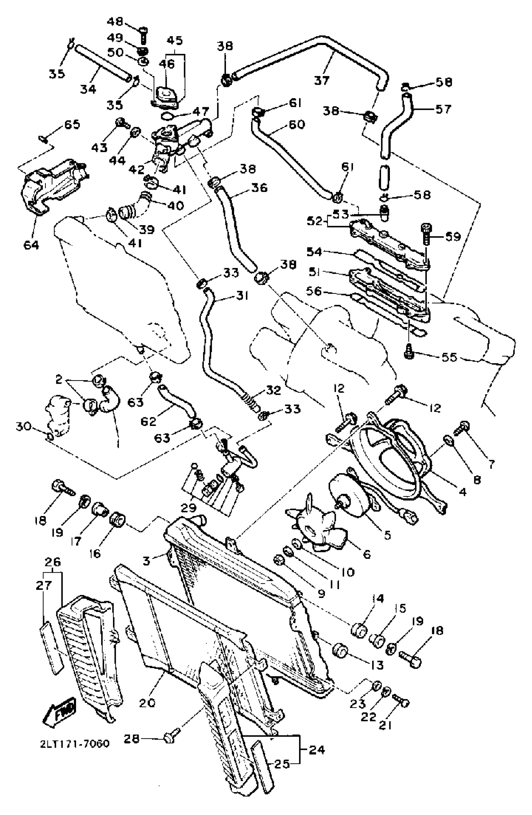 Yamaha VMX12UC (V-MAX 1200 CA) 2WF 1988 RADIATOR HOSE Diagram