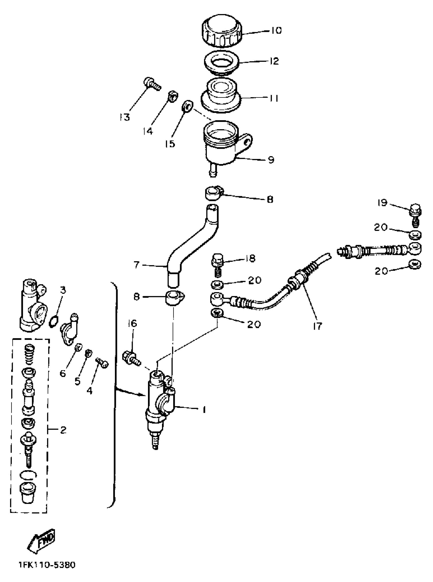 Yamaha VMX12WC (V-MAX 1200 CA) 3JP2 1989 REAR MASTER CYLINDER Diagram