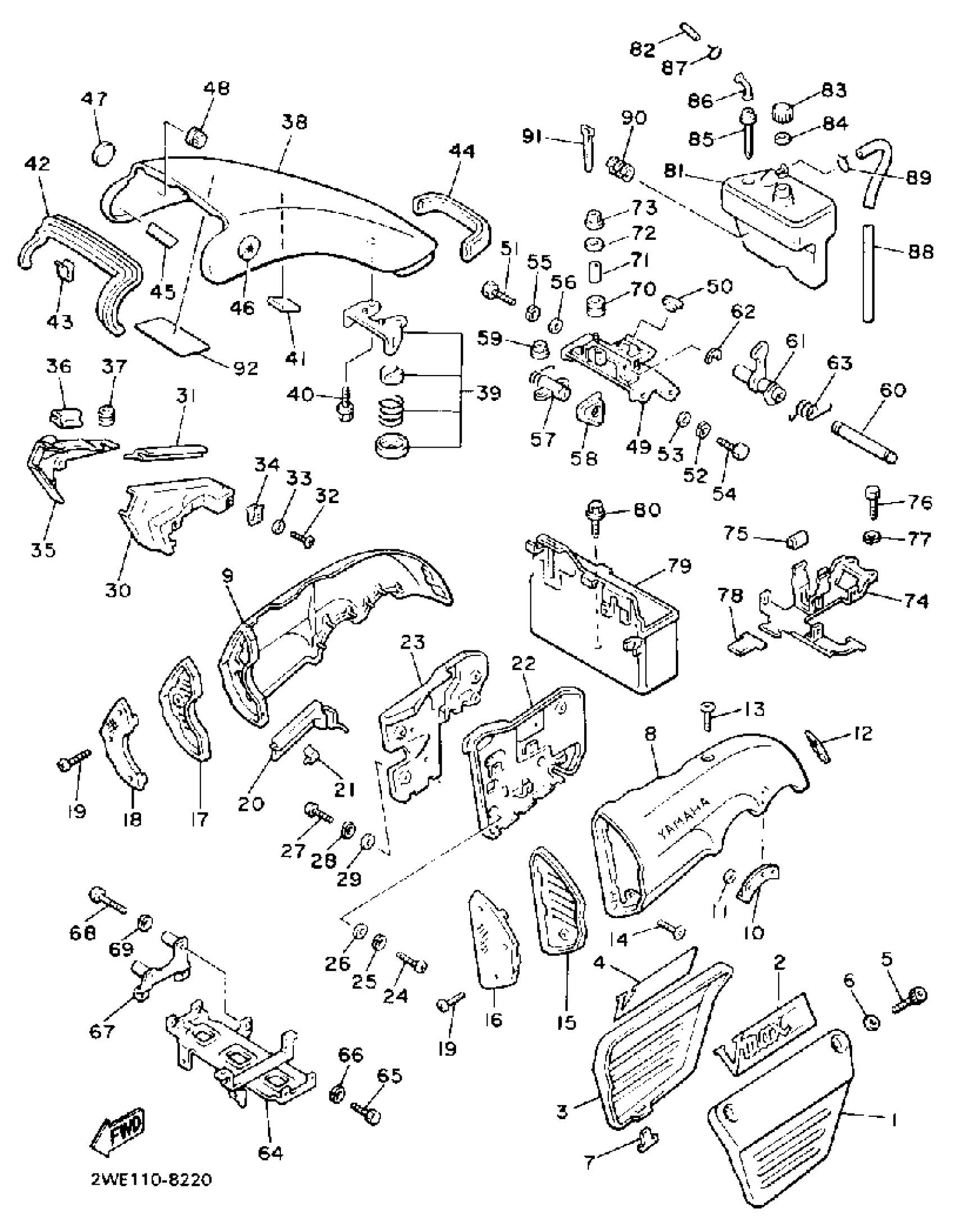 Yamaha VMX12WC (V-MAX 1200 CA) 3JP2 1989 SIDE COVER Diagram