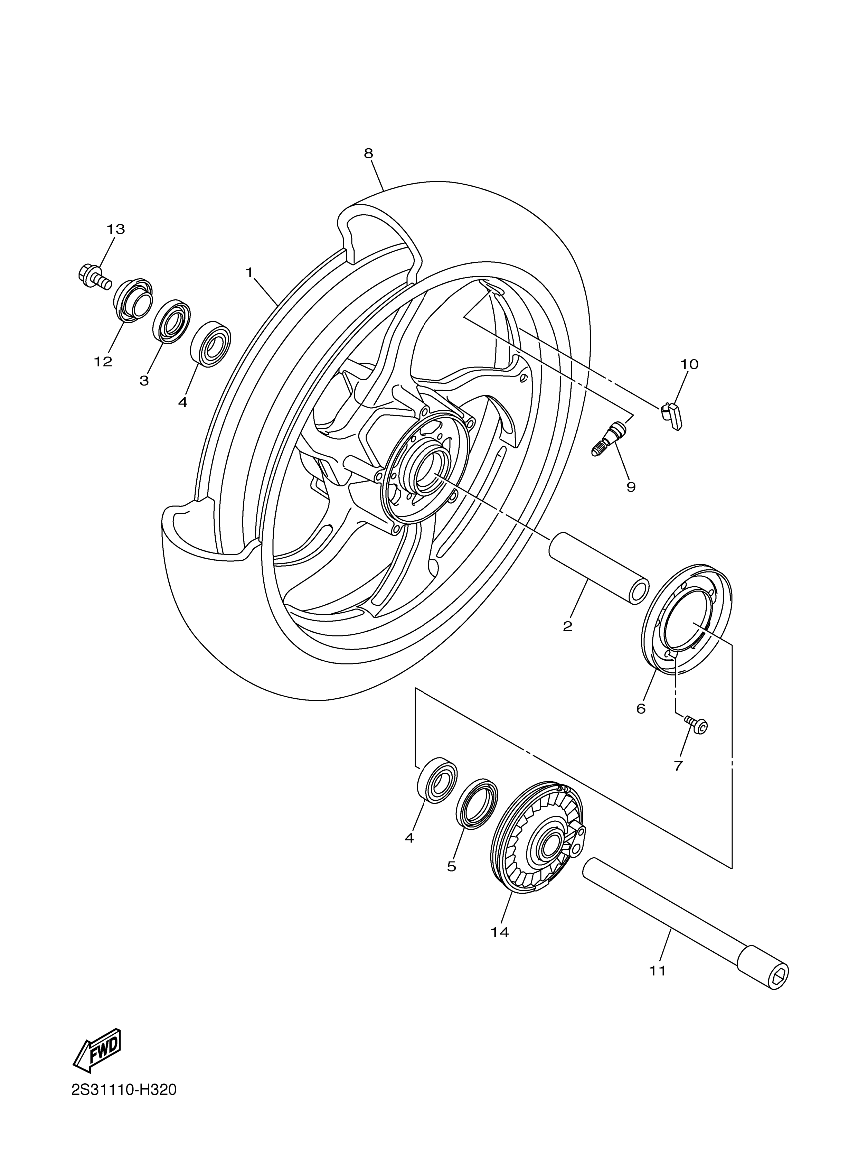 Yamaha VMX17AG (V-MAX) 2S3E 2011 FRONT WHEEL Diagram