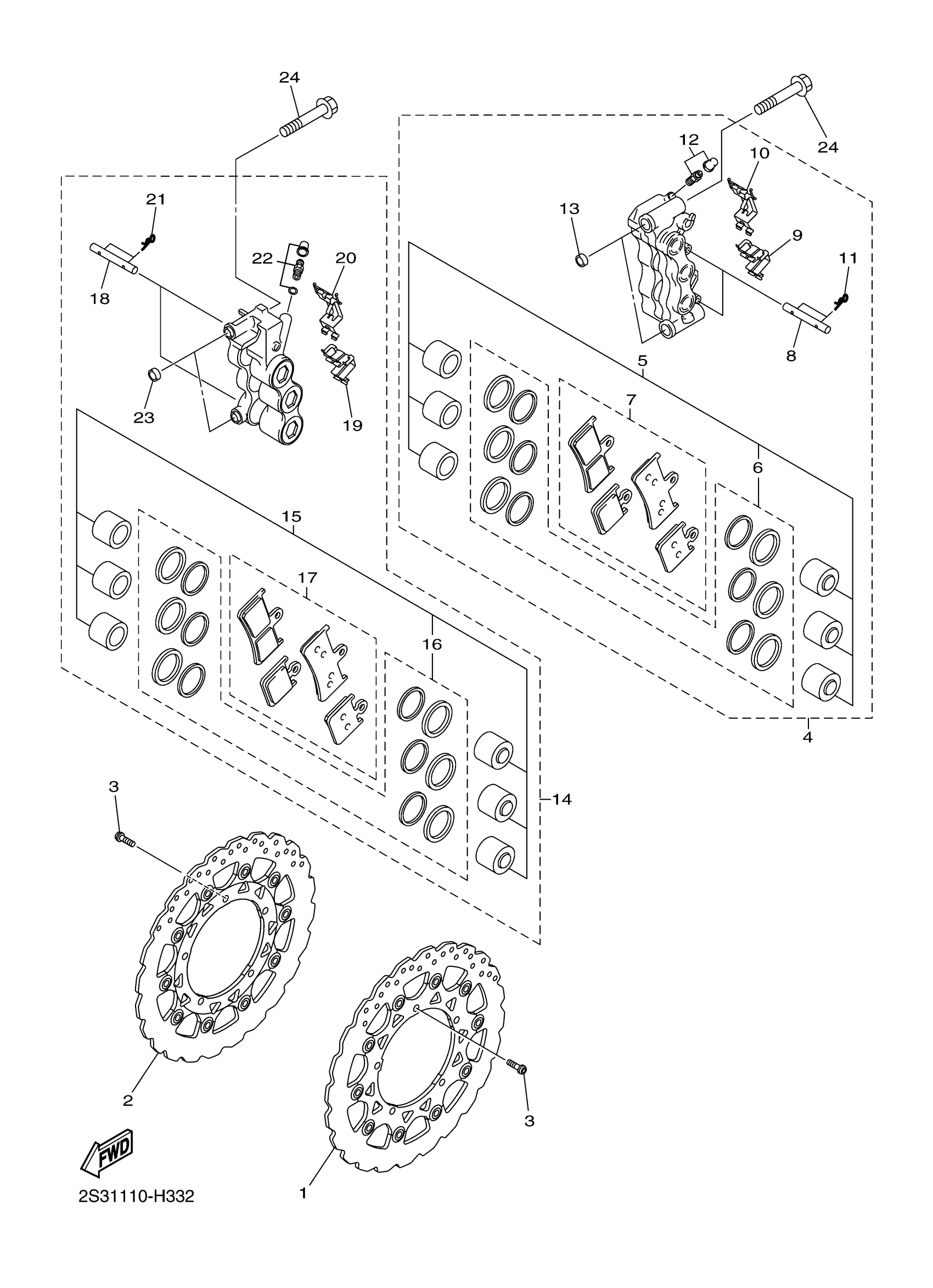 Yamaha VMX17JGY (V-MAX) 2CEV 2018 FRONT BRAKE CALIPER Diagram