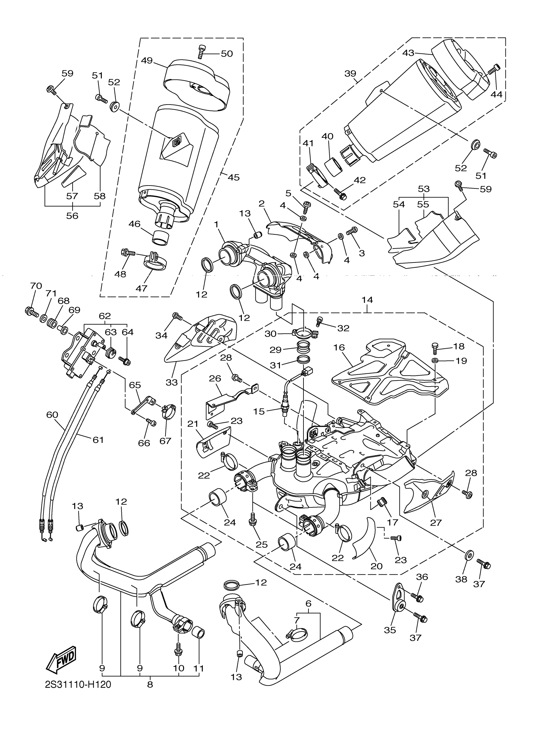 Yamaha VMX17ZR (V-MAX) 2S38 2010 EXHAUST Diagram