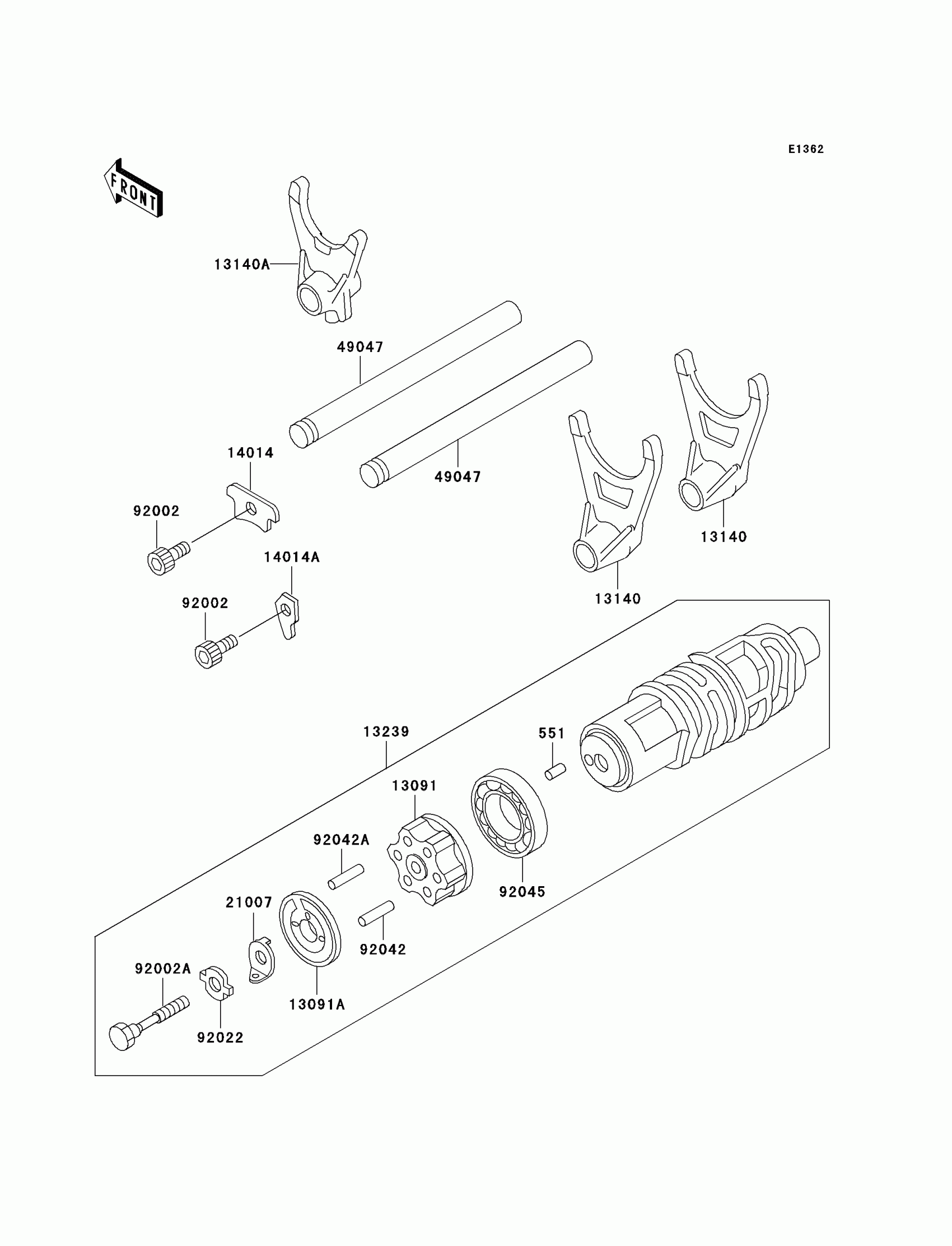 Kawasaki Voyager XII Gear Change Drum/Shift Fork(s) Diagram