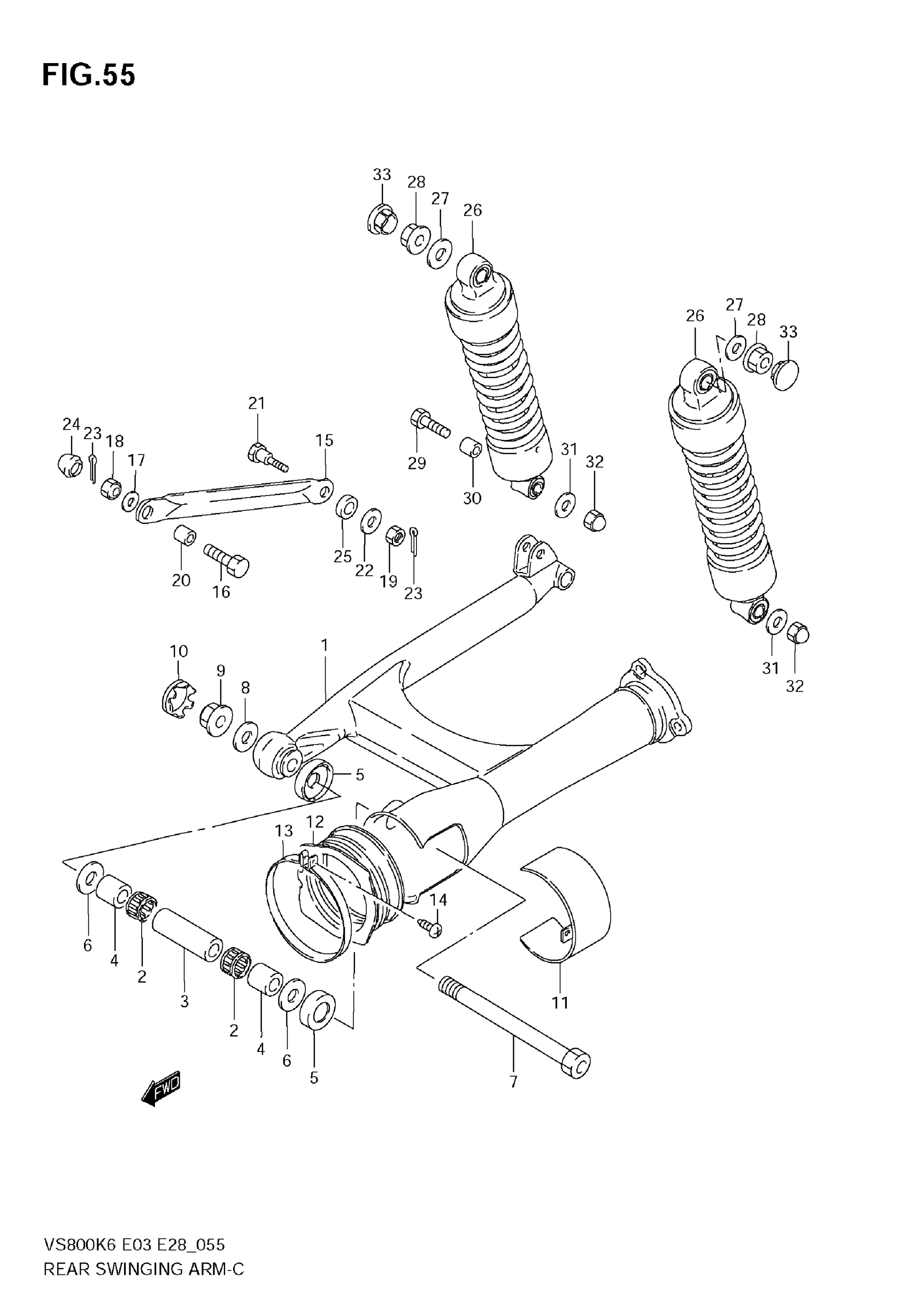 Suzuki VS800 (2009) REAR SWINGING ARM Diagram