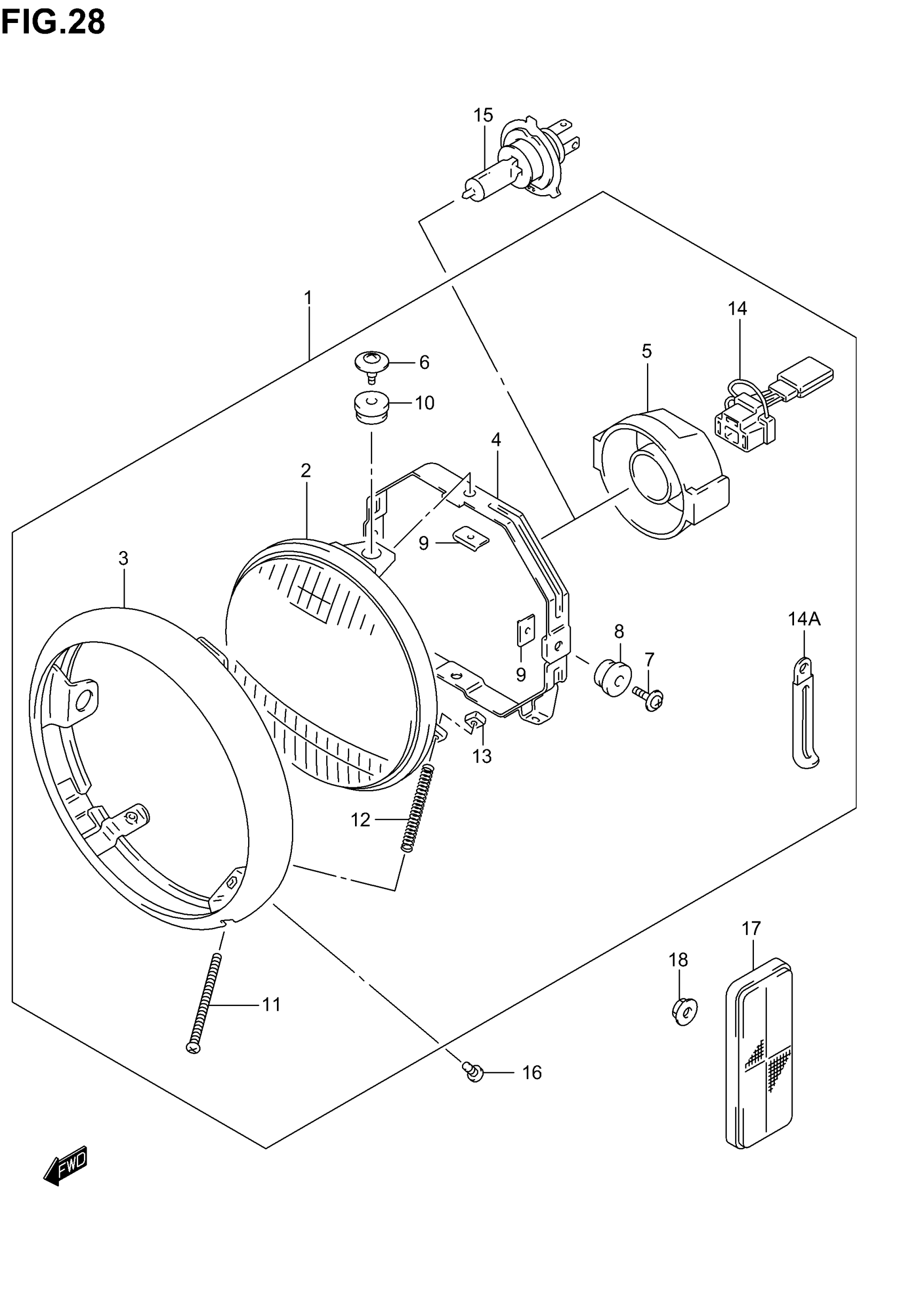 HEADLAMP ASSY | MODEL K2/K3/K4/K5; Includes Item(s) 2 - 14A This part replaces 35100-38A61-999.