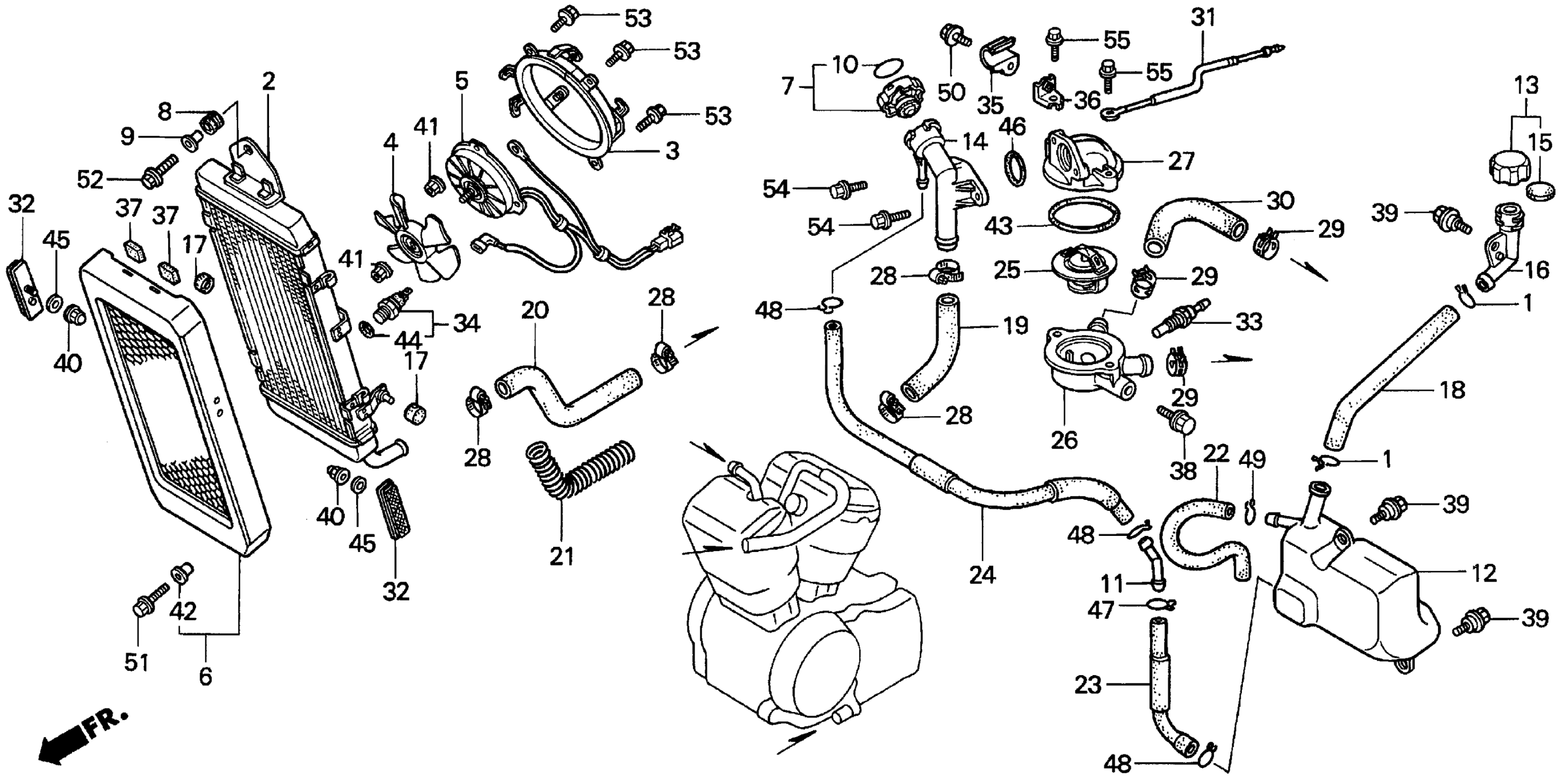 Honda VT1100C2A (02) SHADOW SABRE, 97, VIN# 1HFSC323-VA240001 RADIATOR Diagram