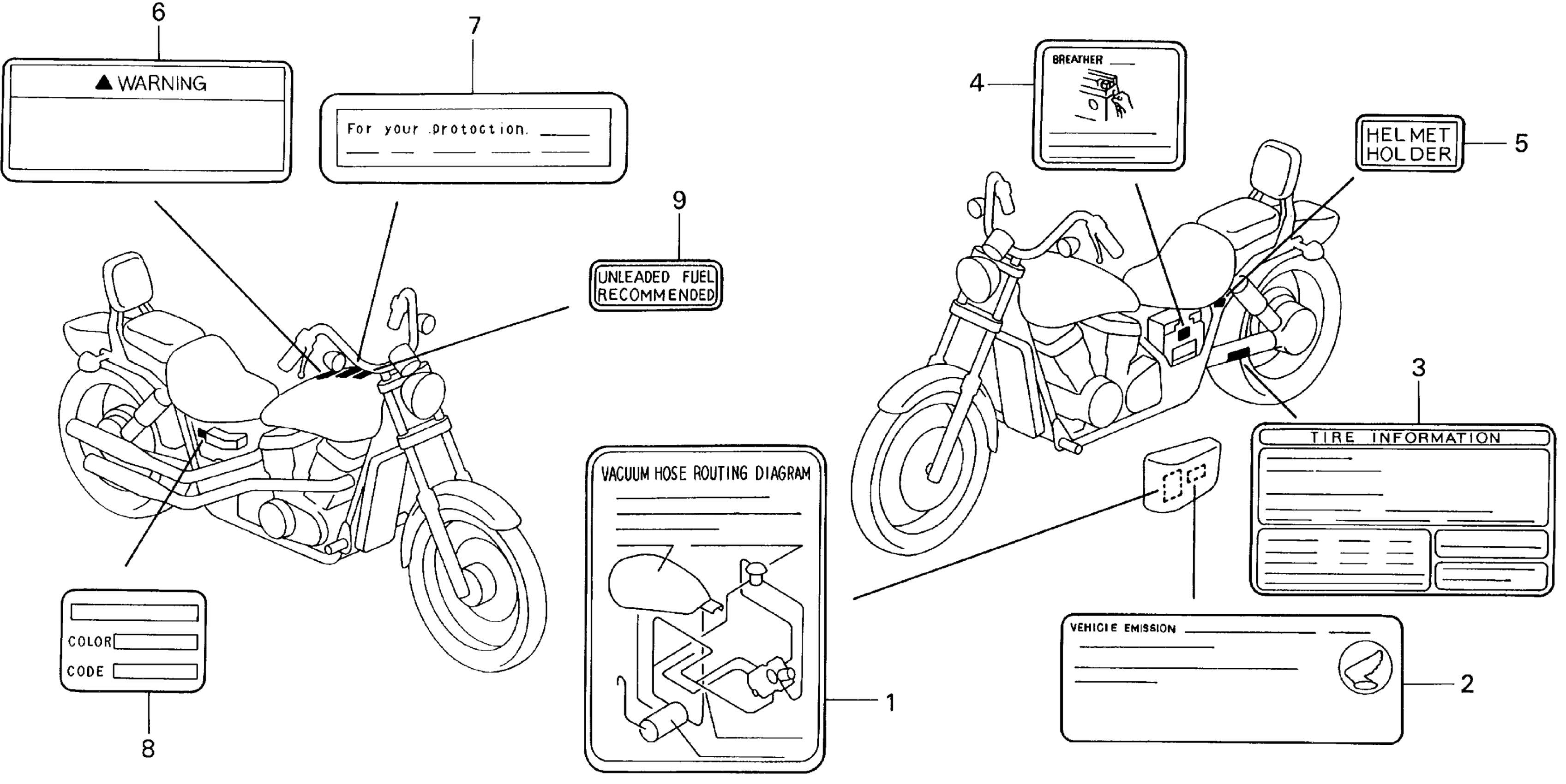 Honda VT1100CA (95) SHADOW 1100, USA, VIN# 1HFSC180-SA900001 VT1100C CAUTION LABEL Diagram