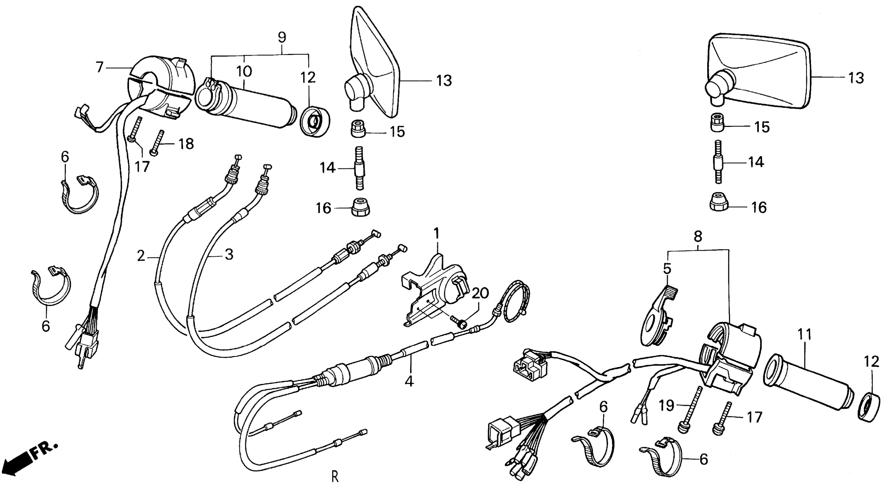 Honda VT1100CA (96) SHADOW 1100, USA, VIN# 1HFSC180-TA000001 VT1100C SWITCHES + CABLES + MIRRORS 95-96 Diagram