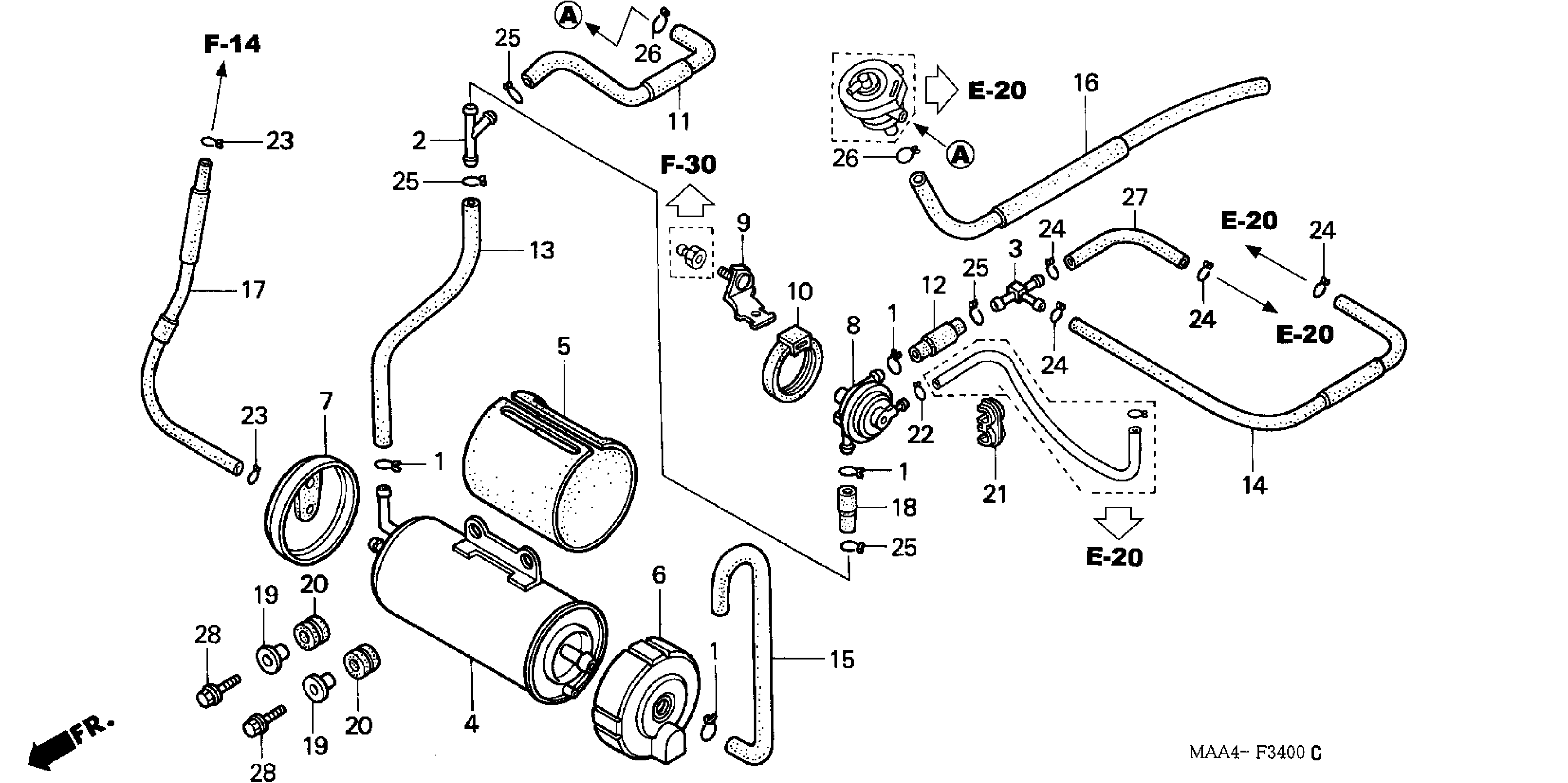 Honda VT1100CAC (05) SHADOW SPIRIT, USA, VIN# 1HFSC181-5A900001 EVAP CANISTER Diagram