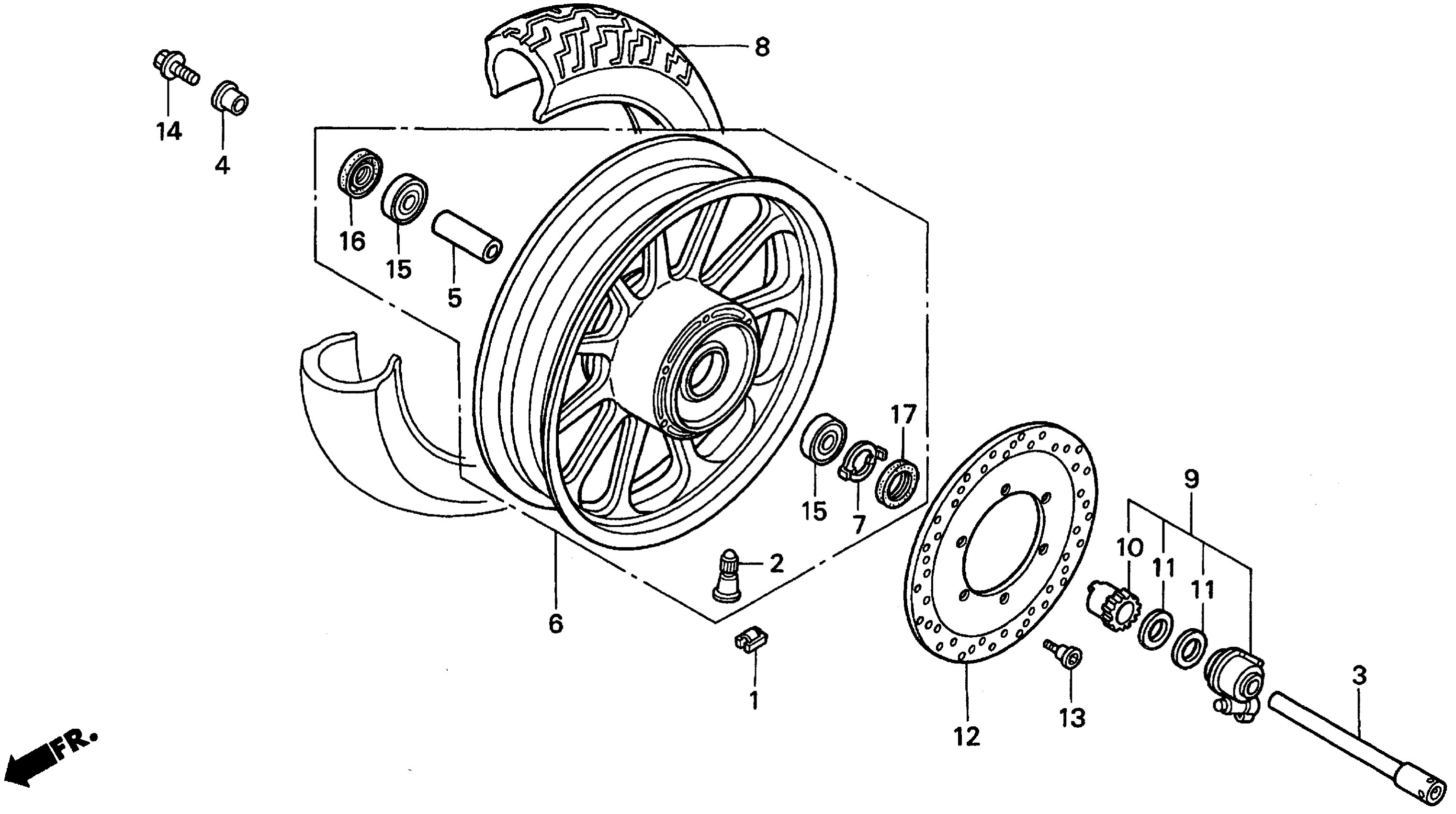 Honda VT1100TA (01) SHADOW 1100AMERICAN CLASSIC EDITION TOURER, USA, VIN# 1HFSC370-1A300001 FRONT WHEEL Diagram