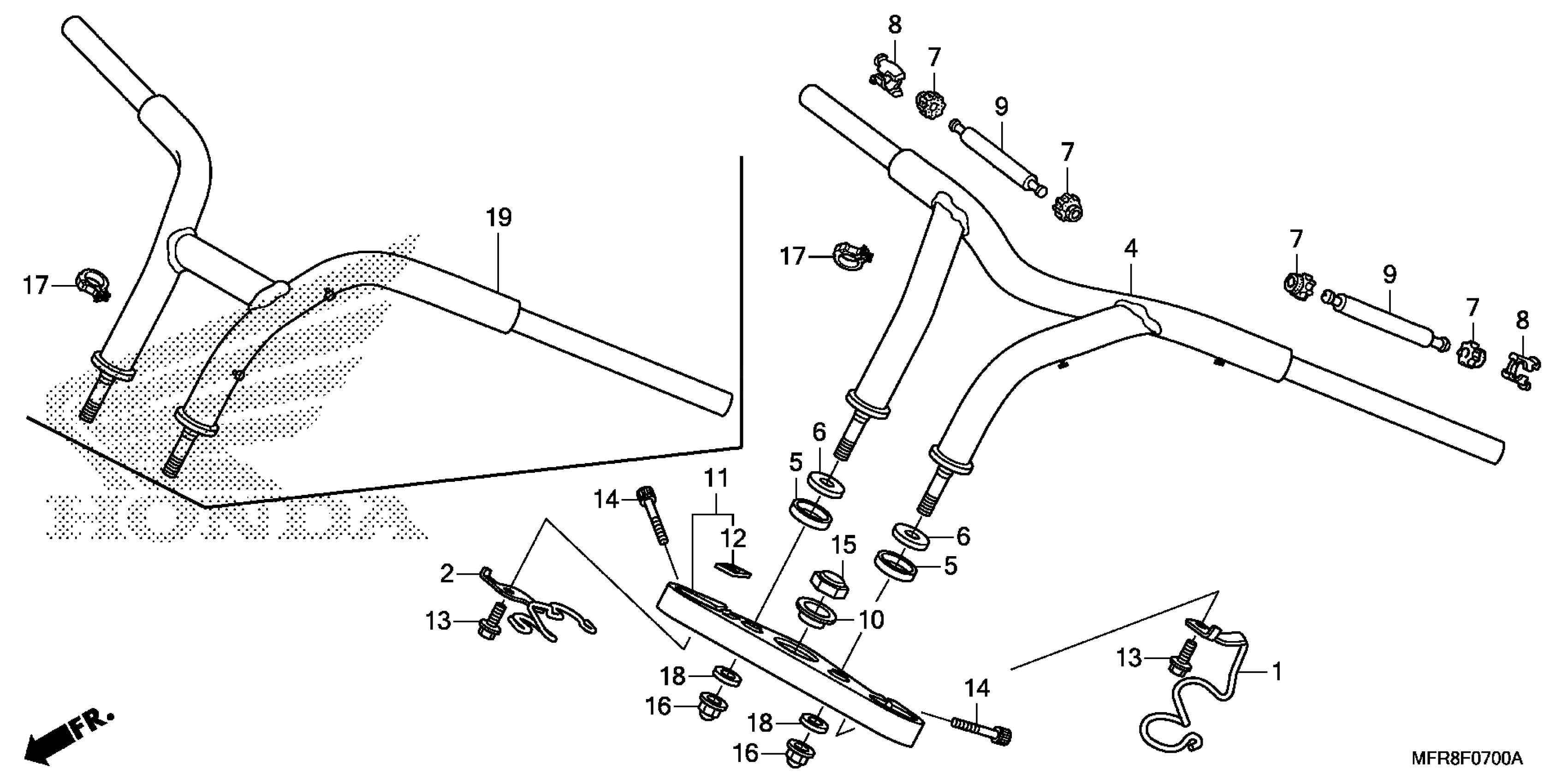 Honda VT1300CRA (14) VT1300CR, JPN, VIN# JH2SC660-EK400001 HANDLEBAR@TOP BRIDGE (1) Diagram