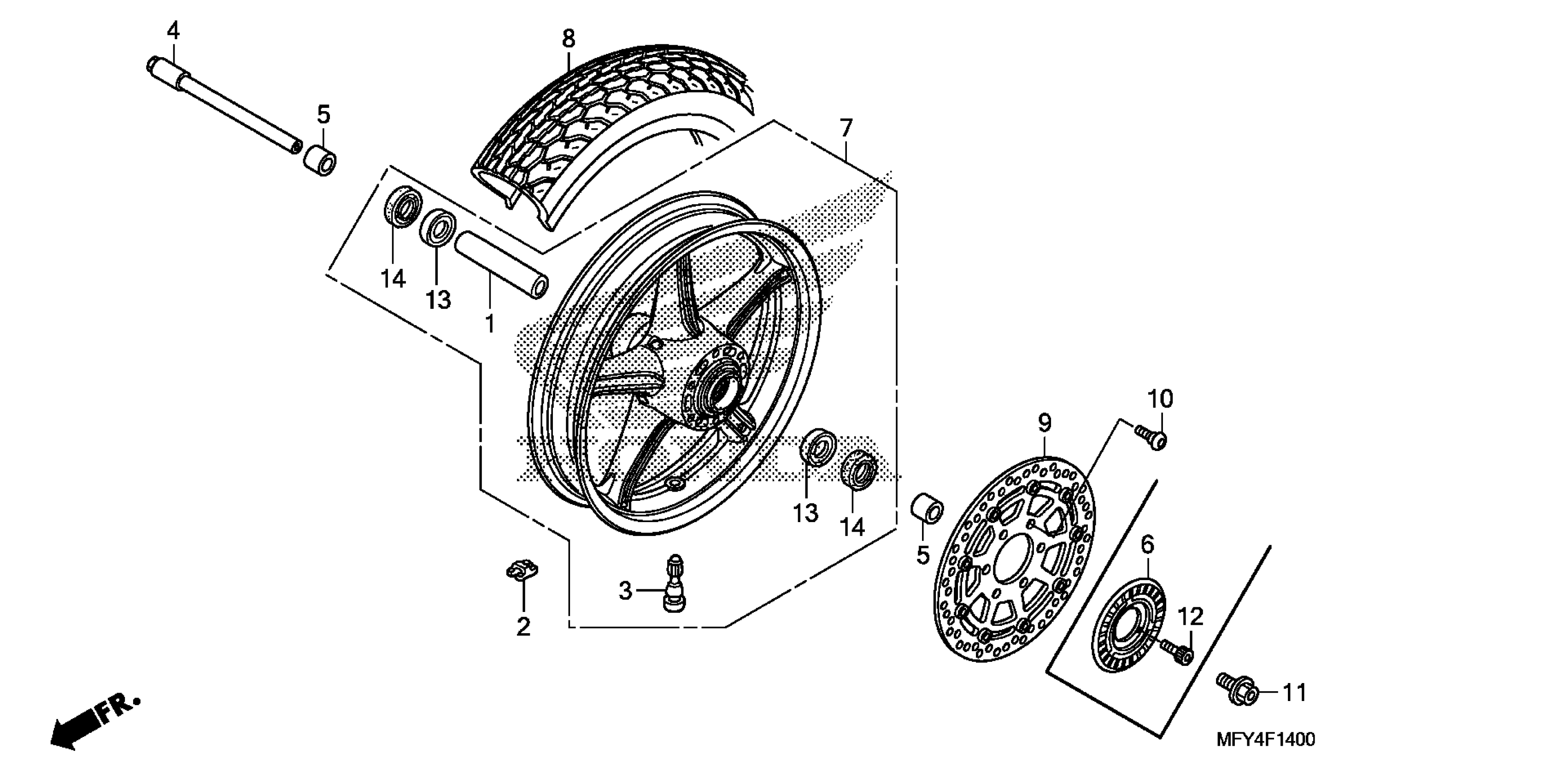 Honda VT1300CRAC (11) STATELINE, JPN, VIN# JH2SC661-BK100001 FRONT WHEEL (1) Diagram