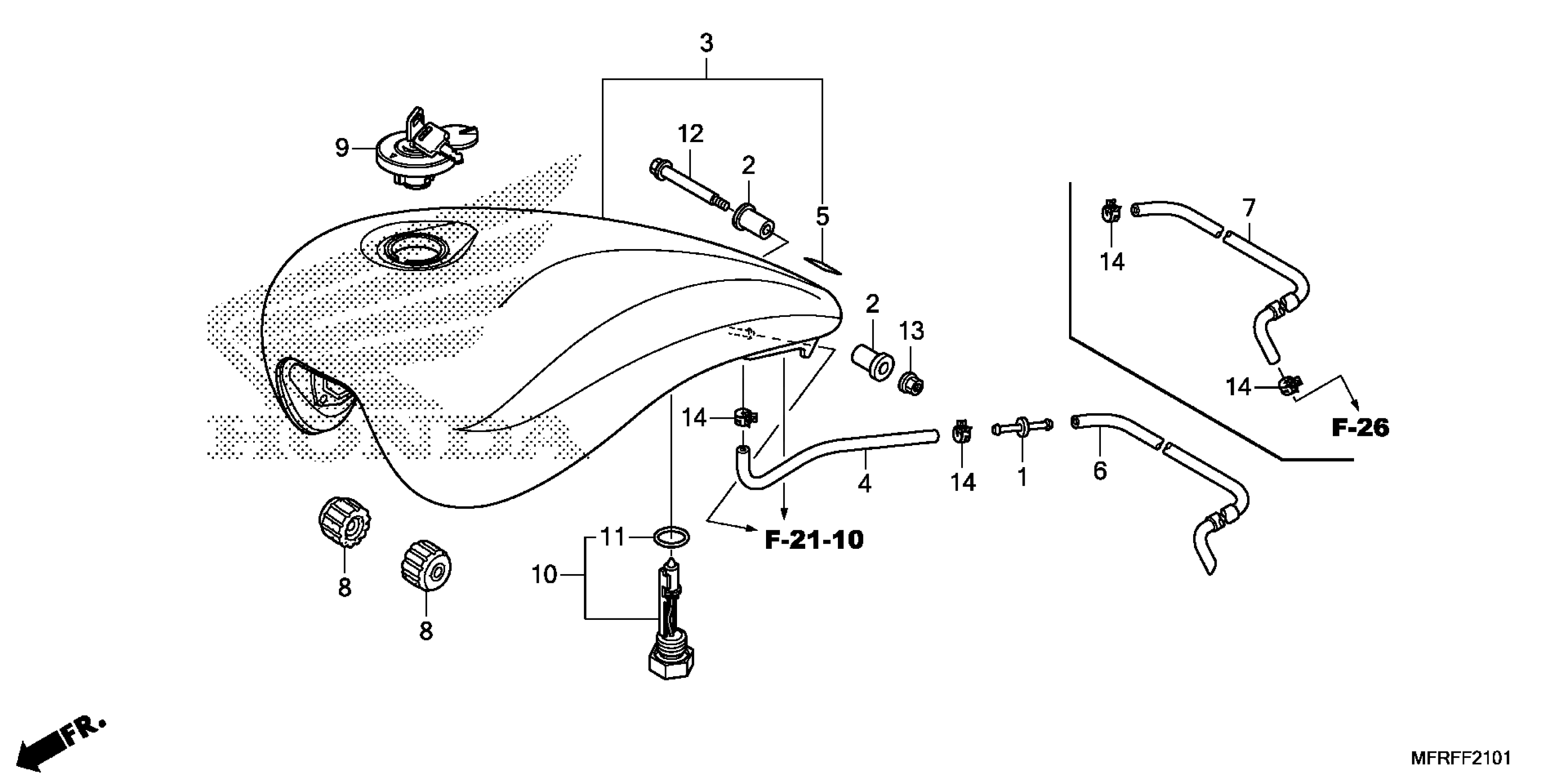 Honda VT1300CX3A (15) MOTORCYCLE, JPN, VIN# JH2SC61N-FK300001 FUEL TANK (2) Diagram