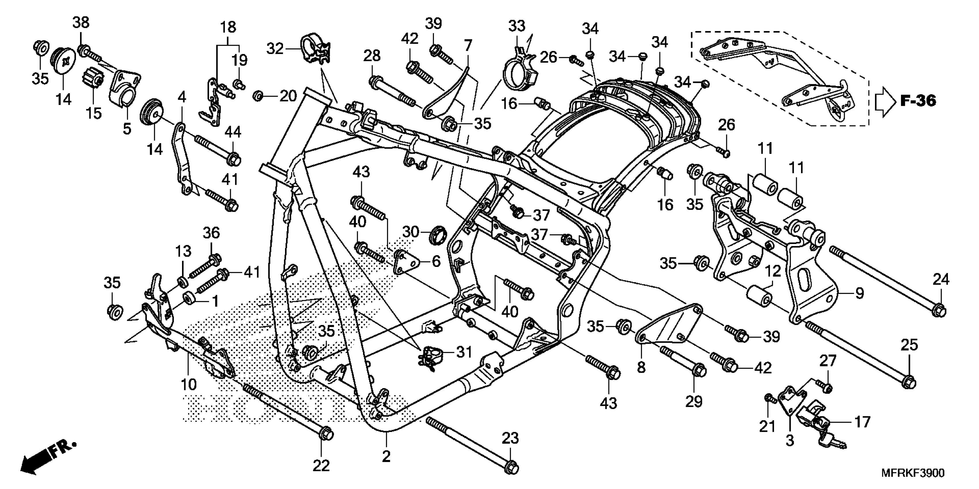Honda VT1300CXA6A (19) MOTORCYCLE, JPN, VIN# JH2SC615-KK400001 TO JH2SC615-KK499999 FRAME Diagram
