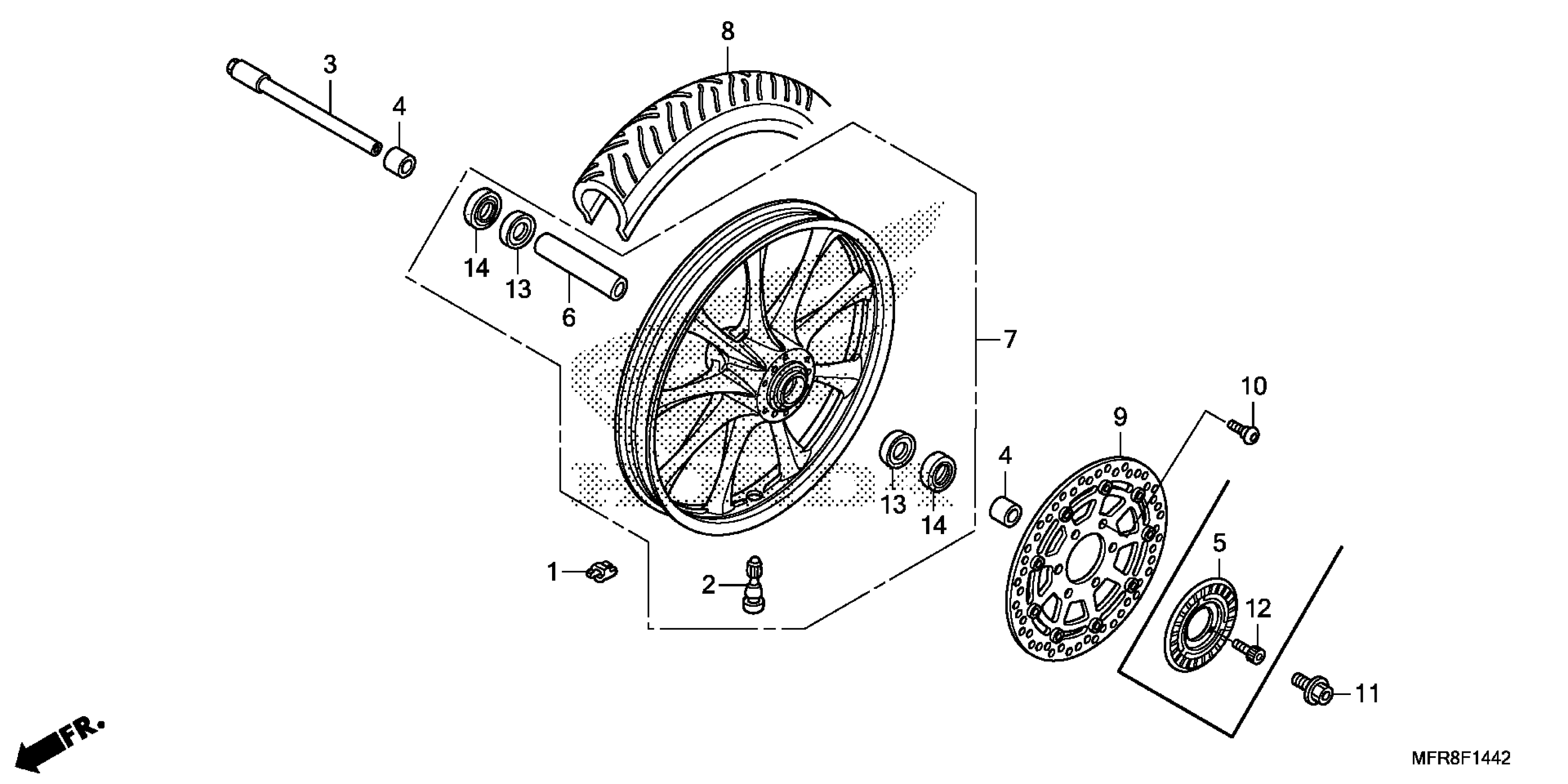 Honda VT1300CXAAC (14) VT1300CXA, JPN, VIN# JH2SC618-EK300001 FRONT WHEEL (3) Diagram