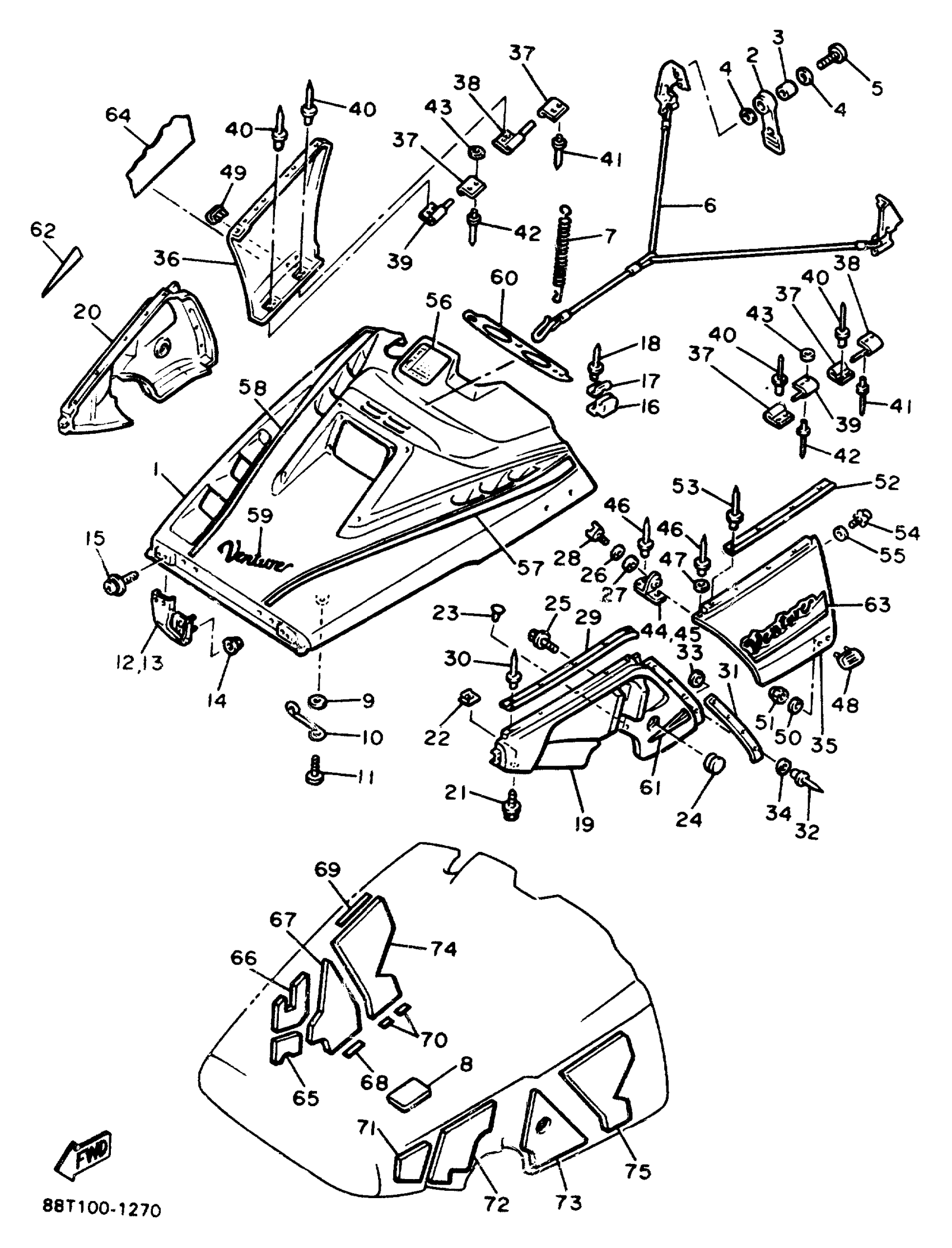 Yamaha VT480R (VENTURE XL) 88T1 1991 SHROUD Diagram