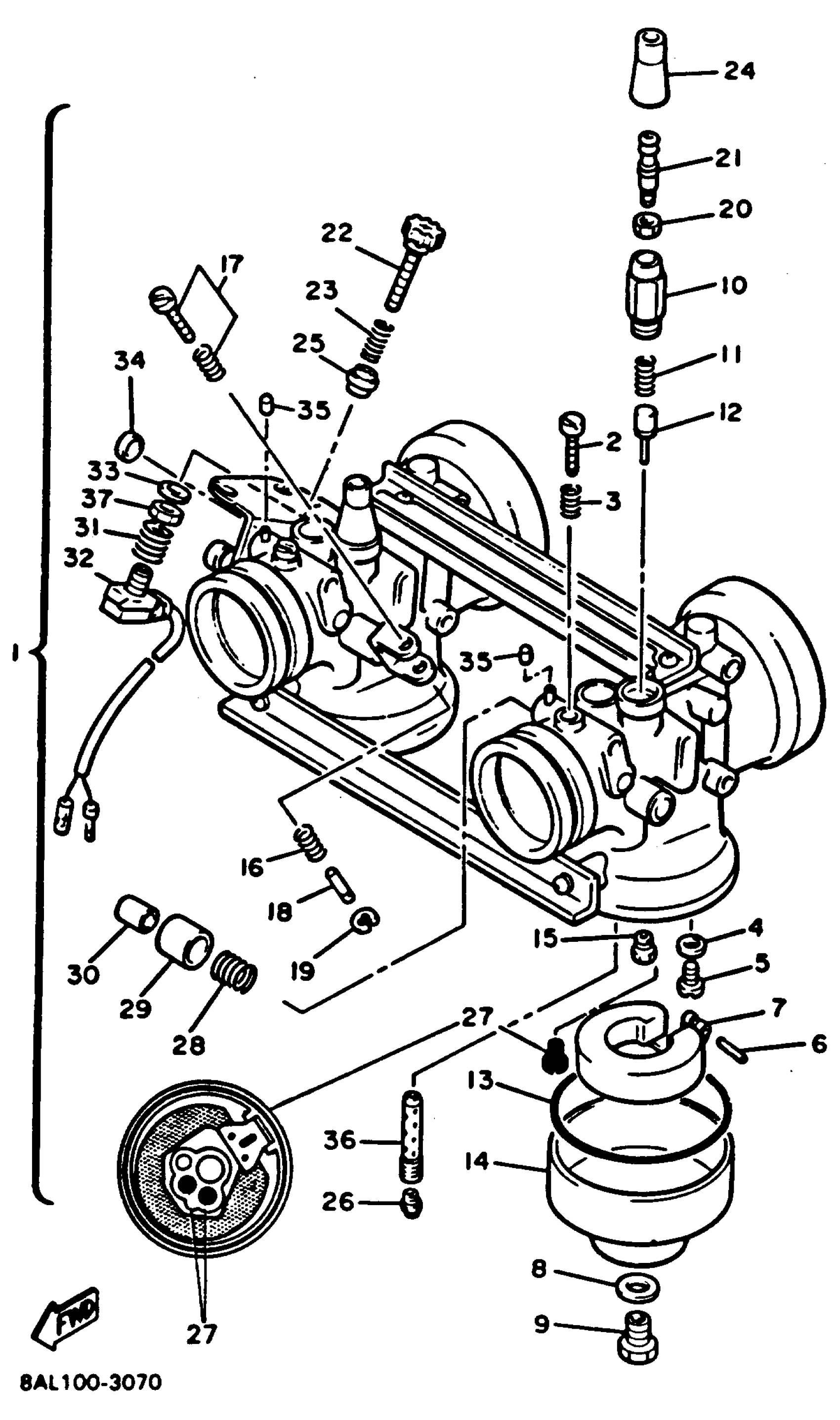 Yamaha VT480T (VENTURE XL) 8AN1 1993 CARBURETOR Diagram