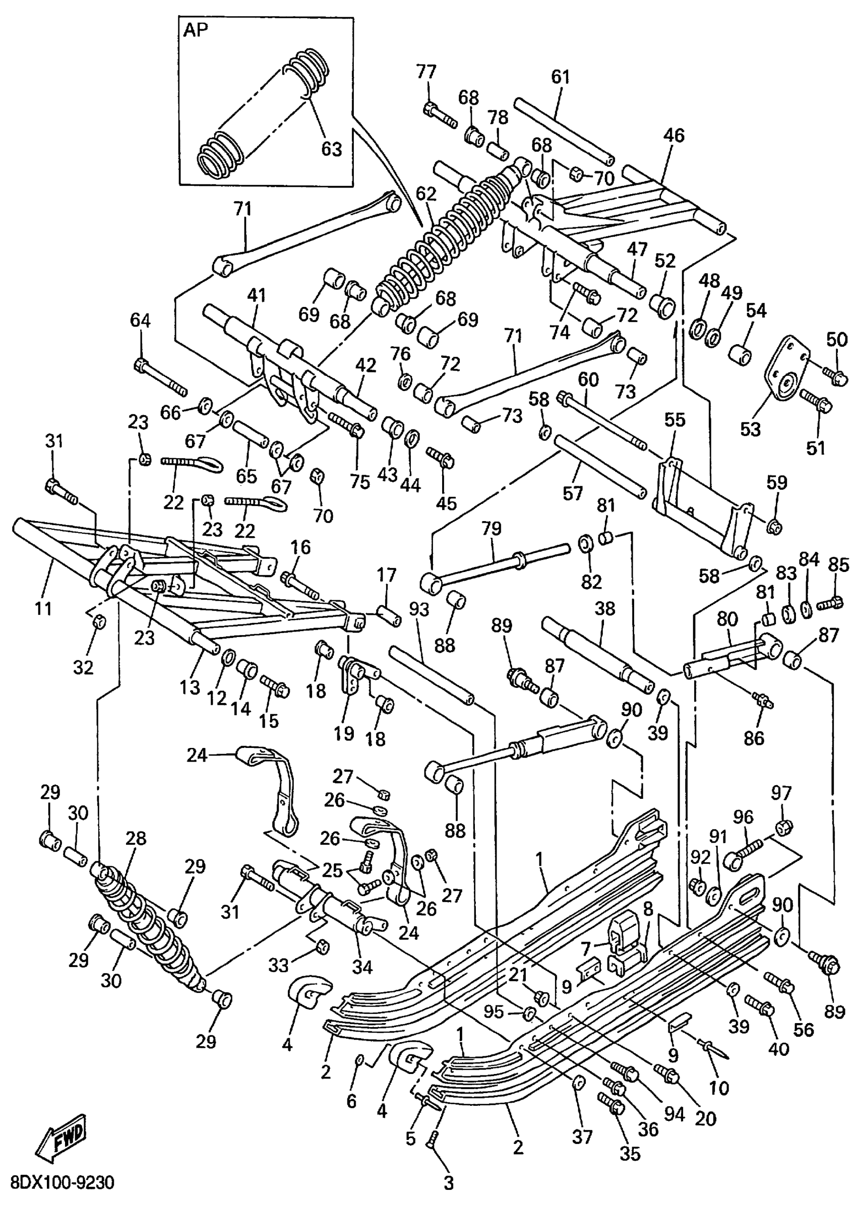 Yamaha VT500XLC (VENTURE 500 XL) 8DX1 1999 TRACK SUSPENSION 2 Diagram