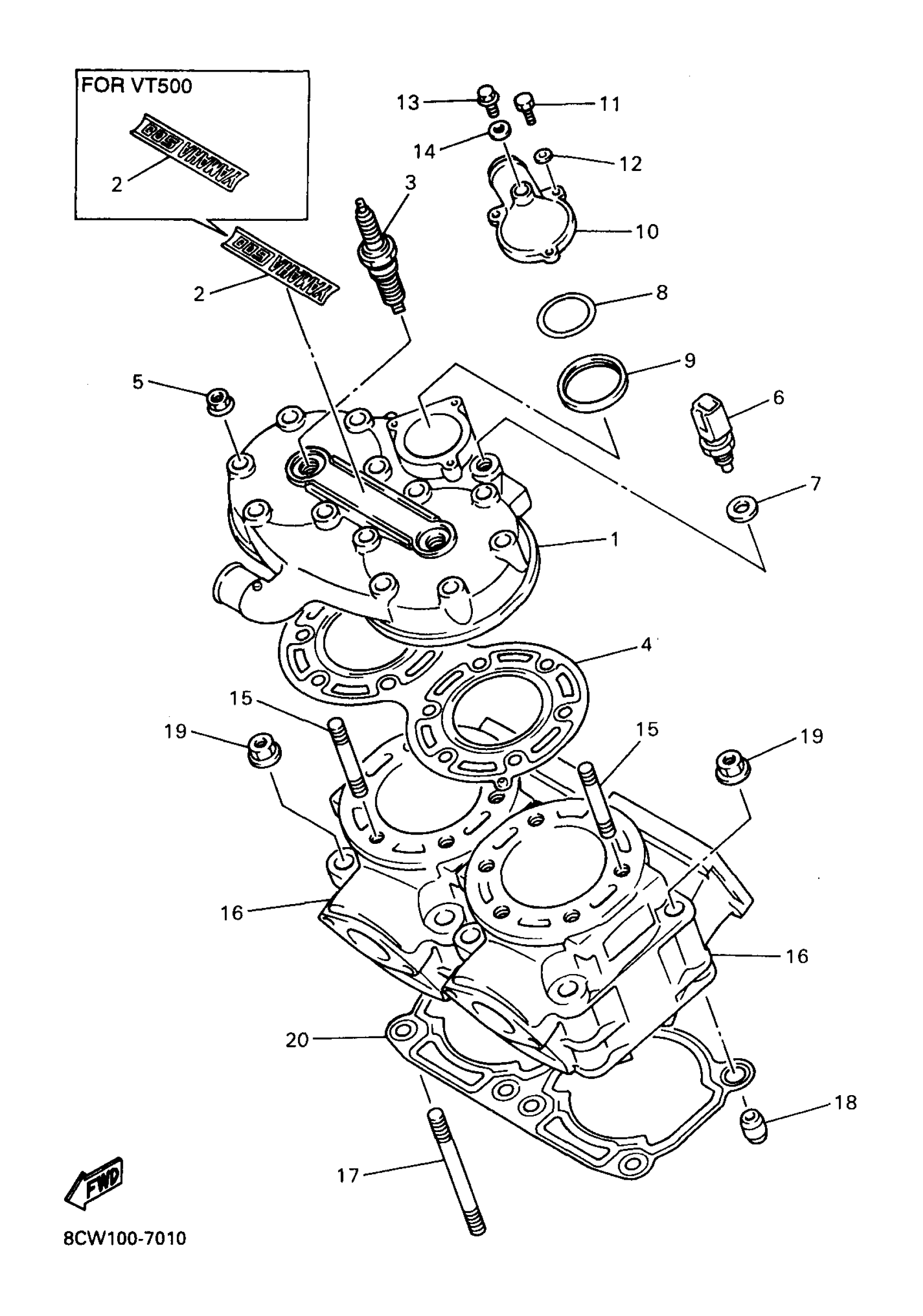 Yamaha VT600A (VENTURE 600) 8CW1 1997 CYLINDER HEAD Diagram