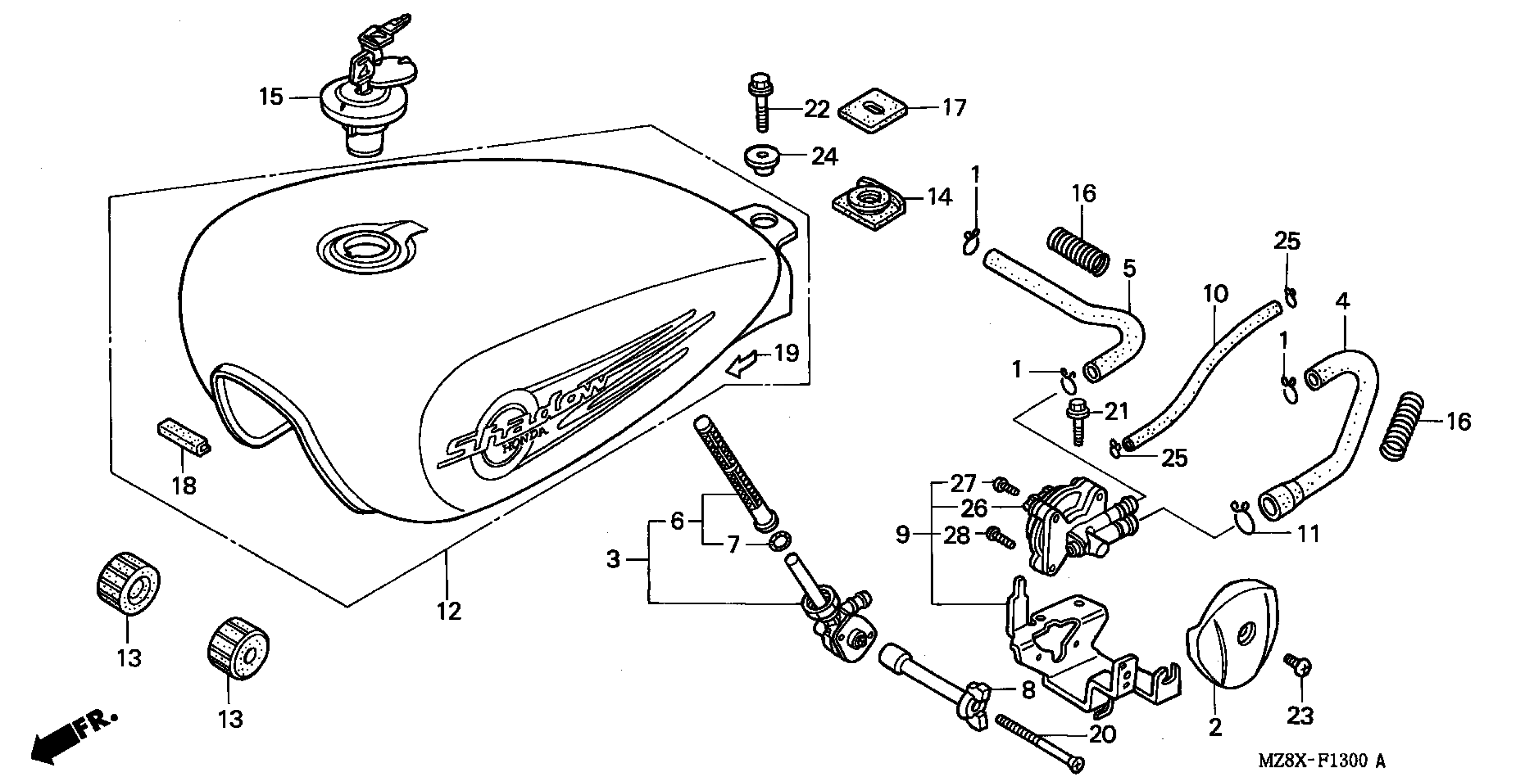 Honda VT600CA (00) MOTORCYCLE, JPN, VIN# JH2PC210-YM110001 FUEL TANK Diagram