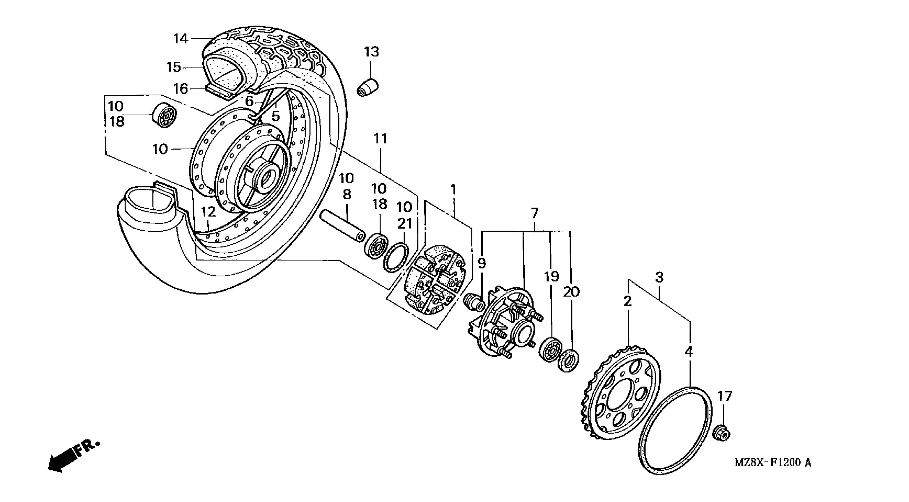 Honda VT600CA (01) MOTORCYCLE, JPN, VIN# JH2PC210-1K200001 REAR WHEEL Diagram
