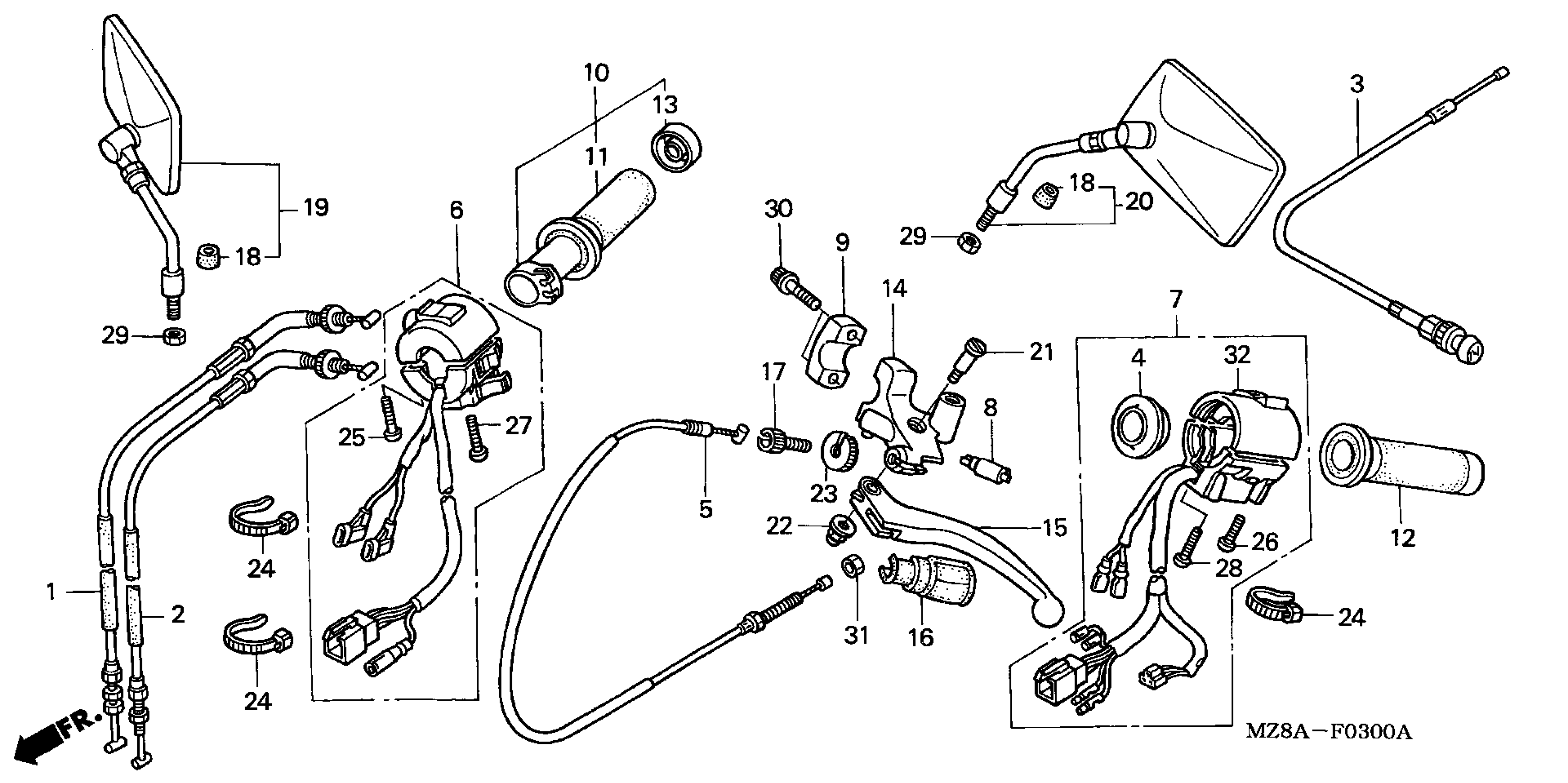 Honda VT600CA (02) SHADOW VLX, JPN, VIN# JH2PC210-2K300001 TO JH2PC210-2K309999 HANDLE LEVER + SWITCH + CABLE Diagram