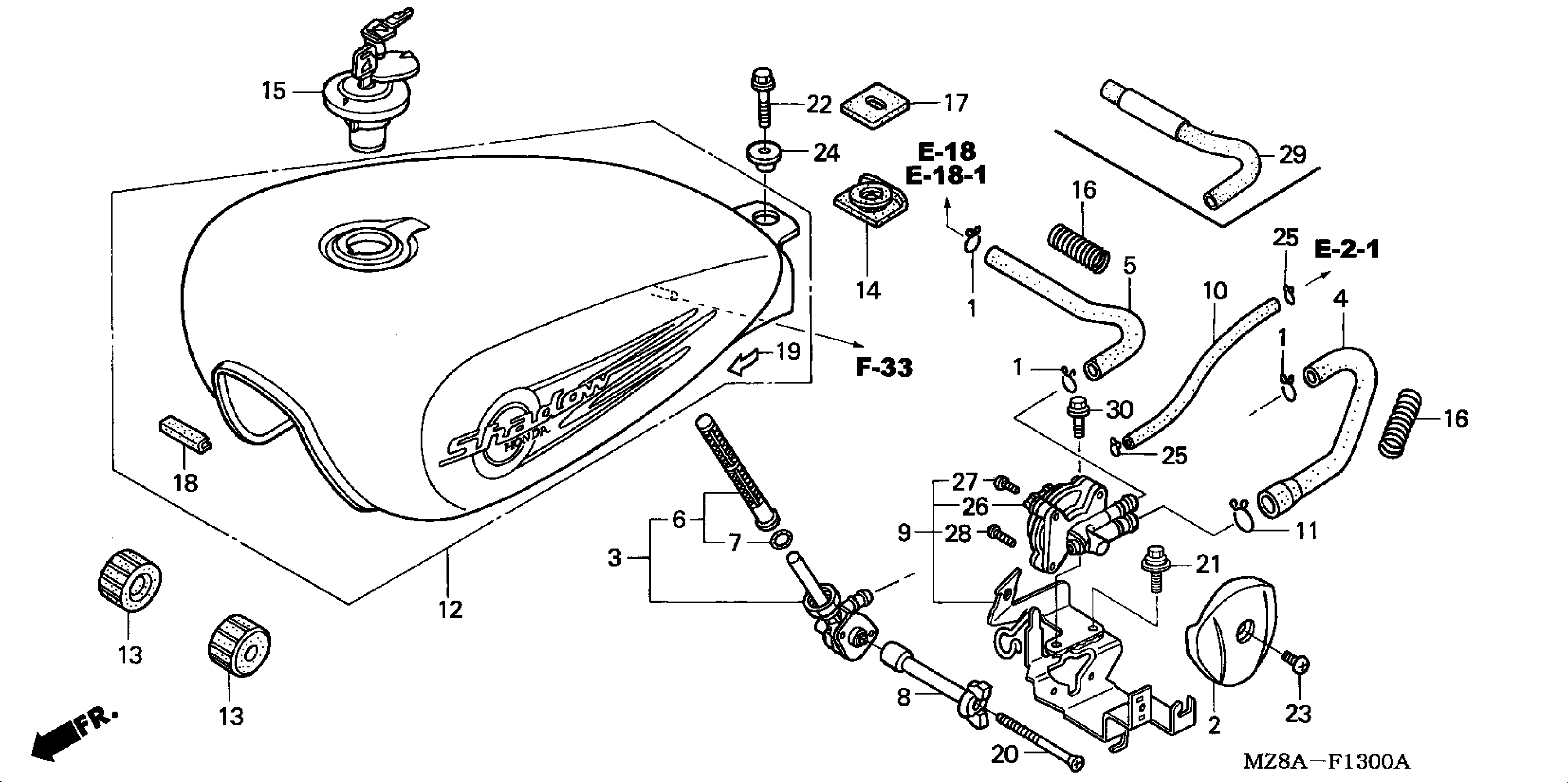 Honda VT600CA (05) SHADOW VLX, JPN, VIN# JH2PC210-5M600001 FUEL TANK Diagram
