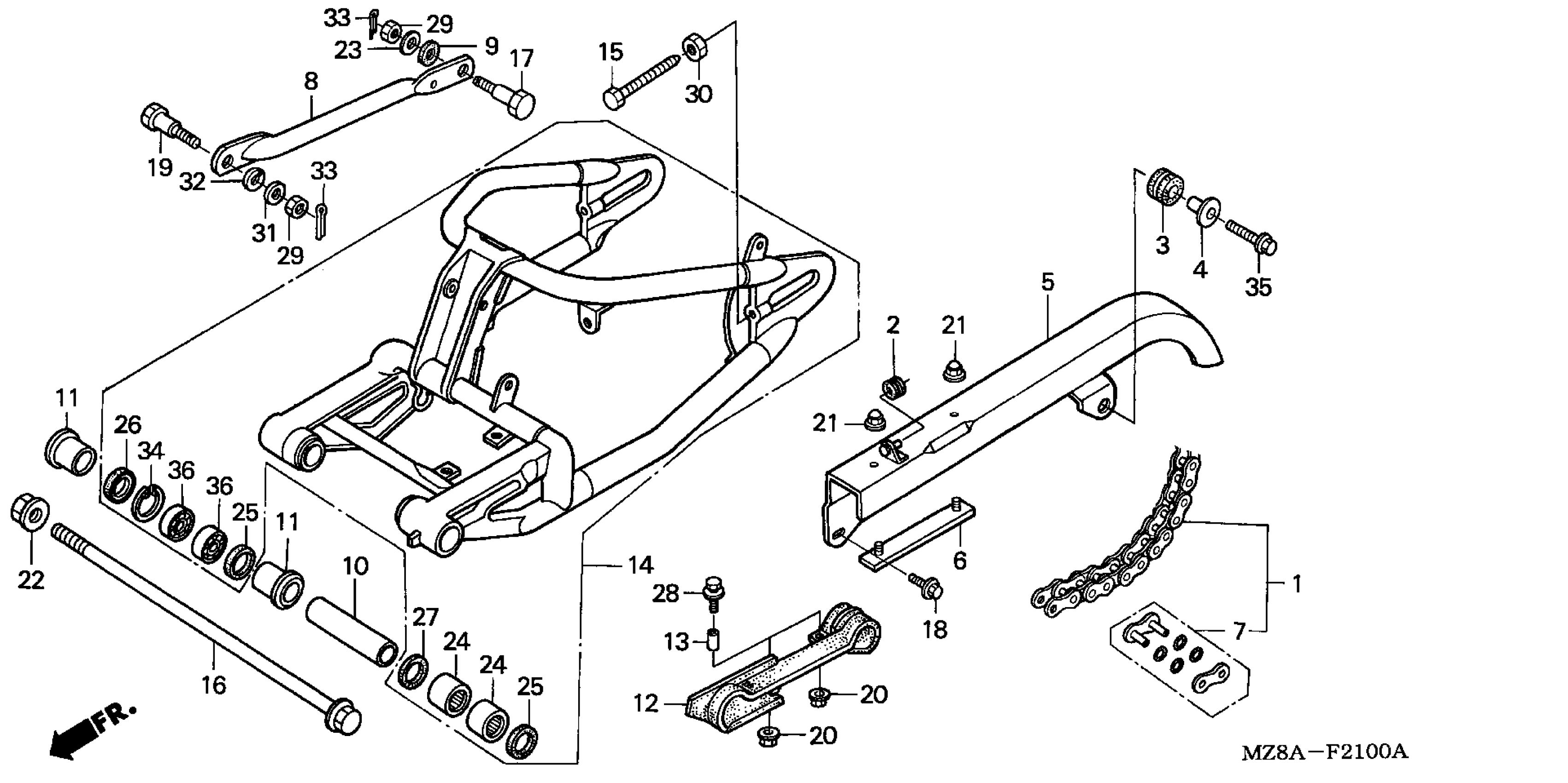 Honda VT600CA (05) SHADOW VLX, JPN, VIN# JH2PC210-5M600001 SWINGARM Diagram