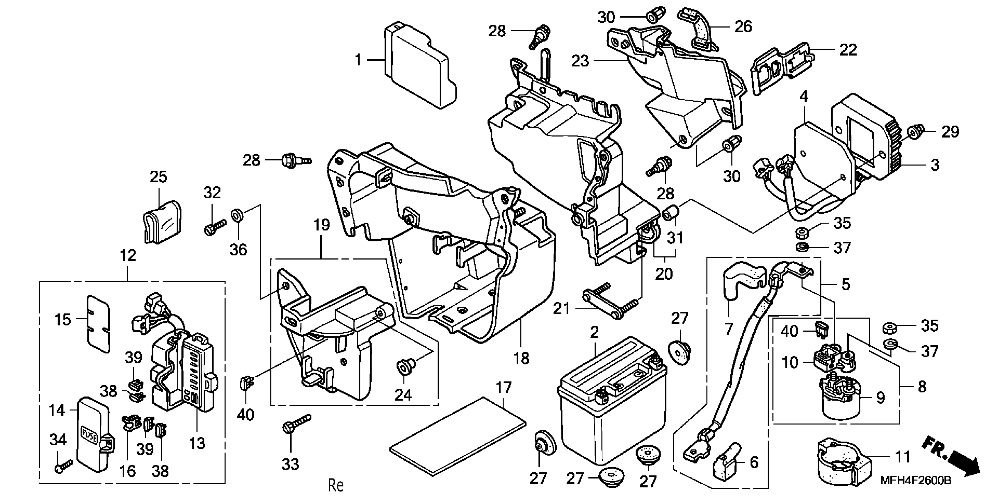 Honda VT600CA (07) SHADOW VLX, JPN, VIN# JH2PC210-7M800001 TO JH2PC210-7M809999 BATTERY + BATTERY BOX Diagram