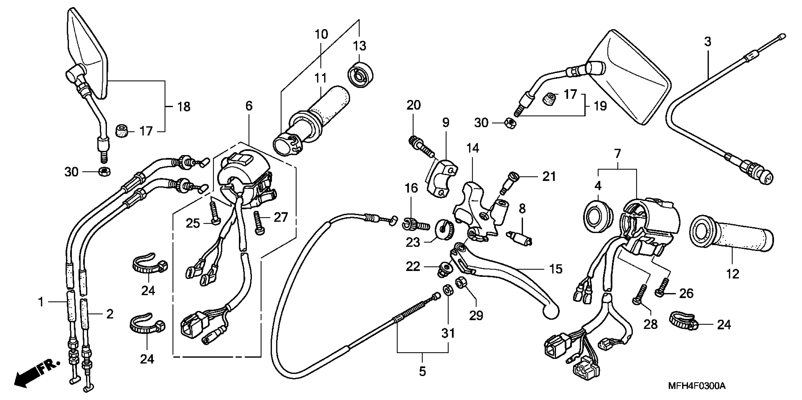 Honda VT600CA (07) SHADOW VLX, JPN, VIN# JH2PC210-7M800001 TO JH2PC210-7M809999 HANDLE LEVER + SWITCH + CABLE Diagram