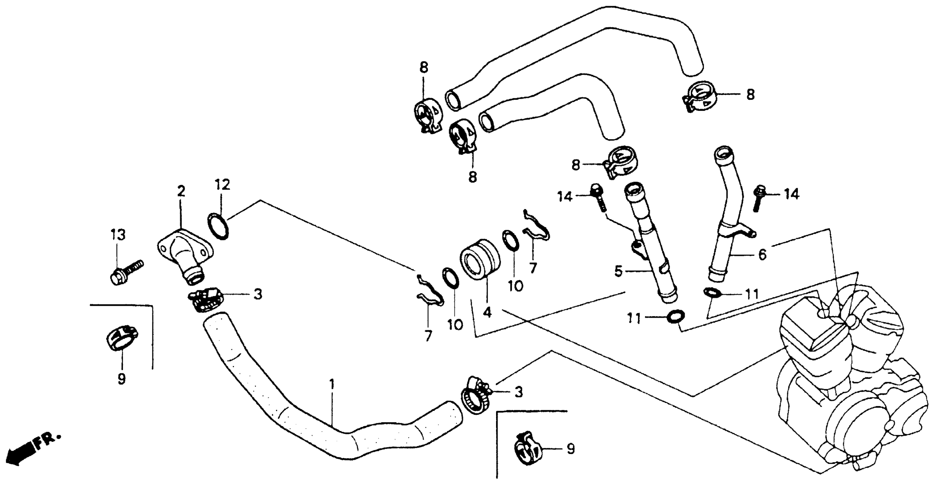 Honda VT600CA (93) SHADOW VLX, JPN, VIN# JH2PC210-PM400001 WATER PIPE Diagram