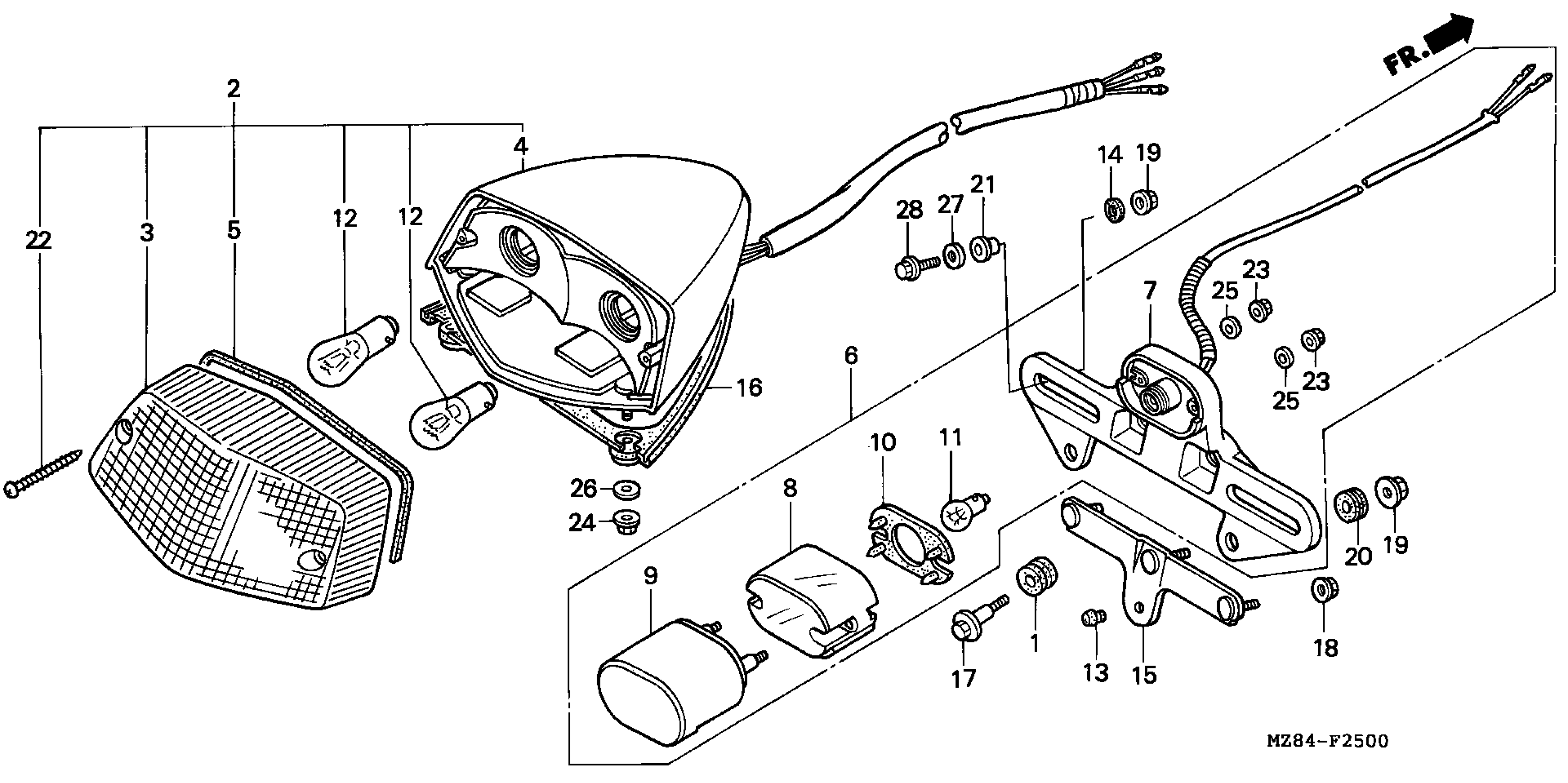 Honda VT600CDA (98) SHADOW VLX DELUXE, JPN, VIN# JH2PC213-WM500001 TAILLIGHT Diagram