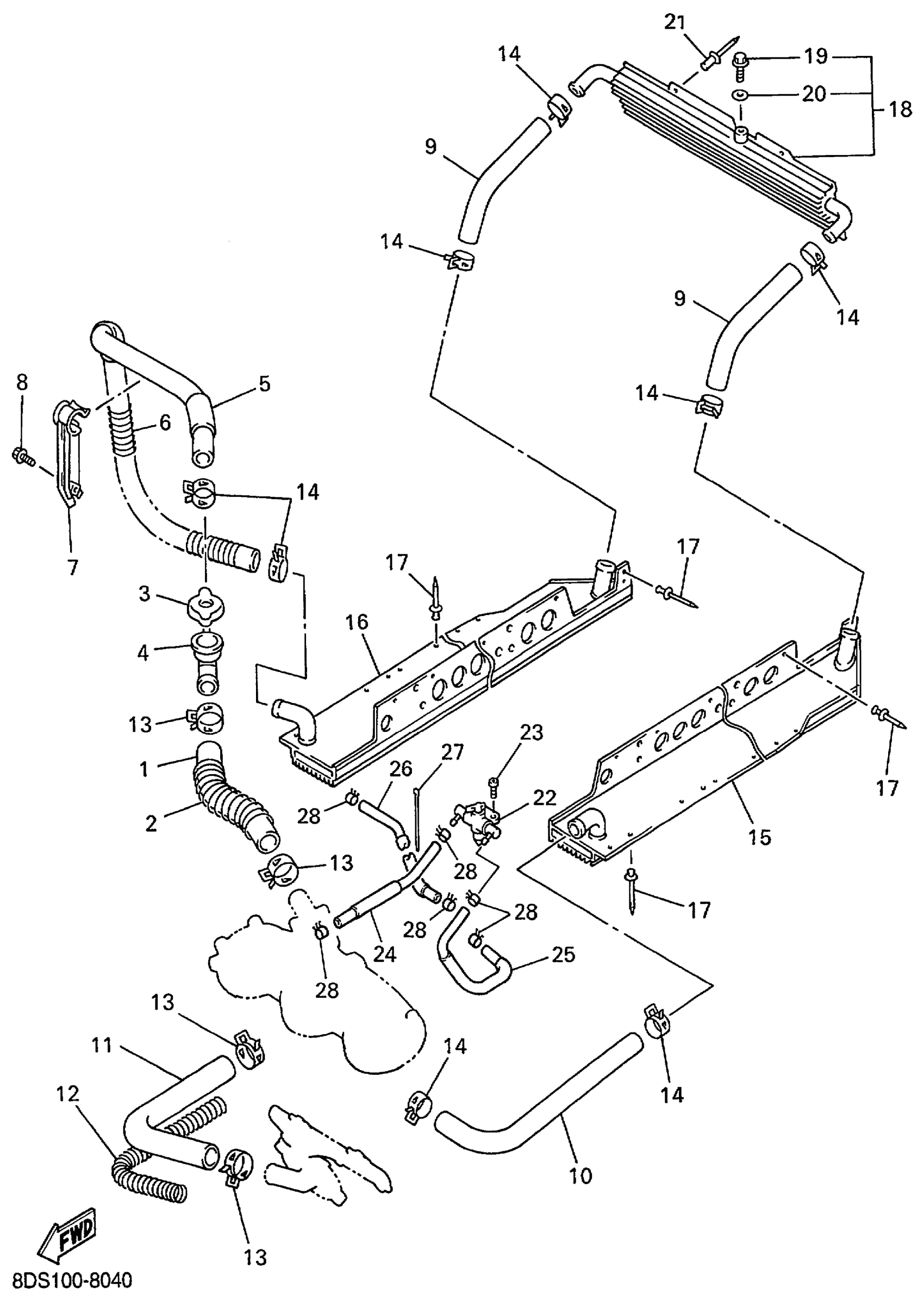 Yamaha VT700C (VENTURE 700) 8DM2 1999 RADIATOR HOSE Diagram
