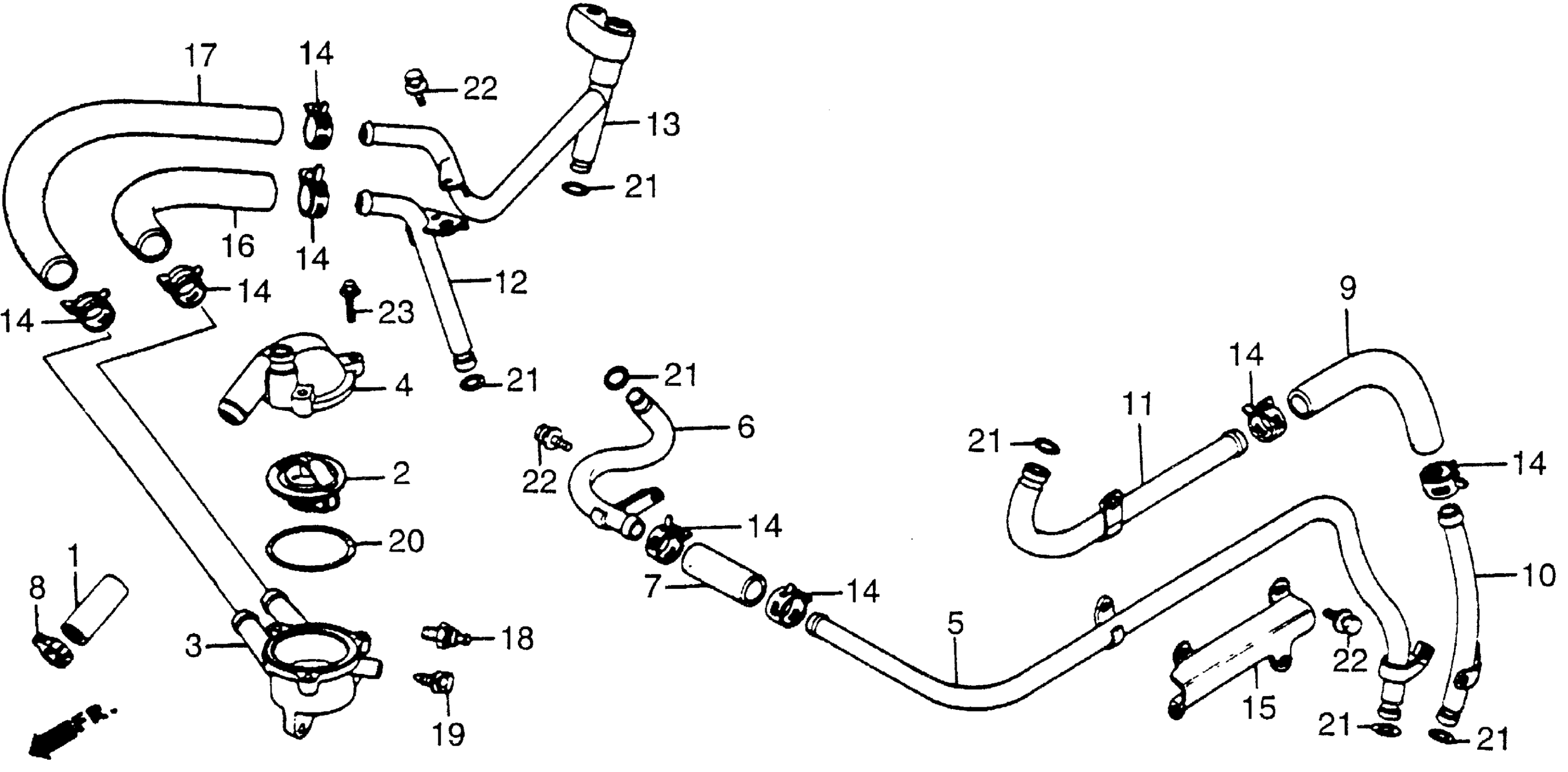 Honda VT700CA (85) SHADOW, JPN, VIN# JH2RC190-FM100001 TO JH2RC190-FM113279 WATER PIPE Diagram