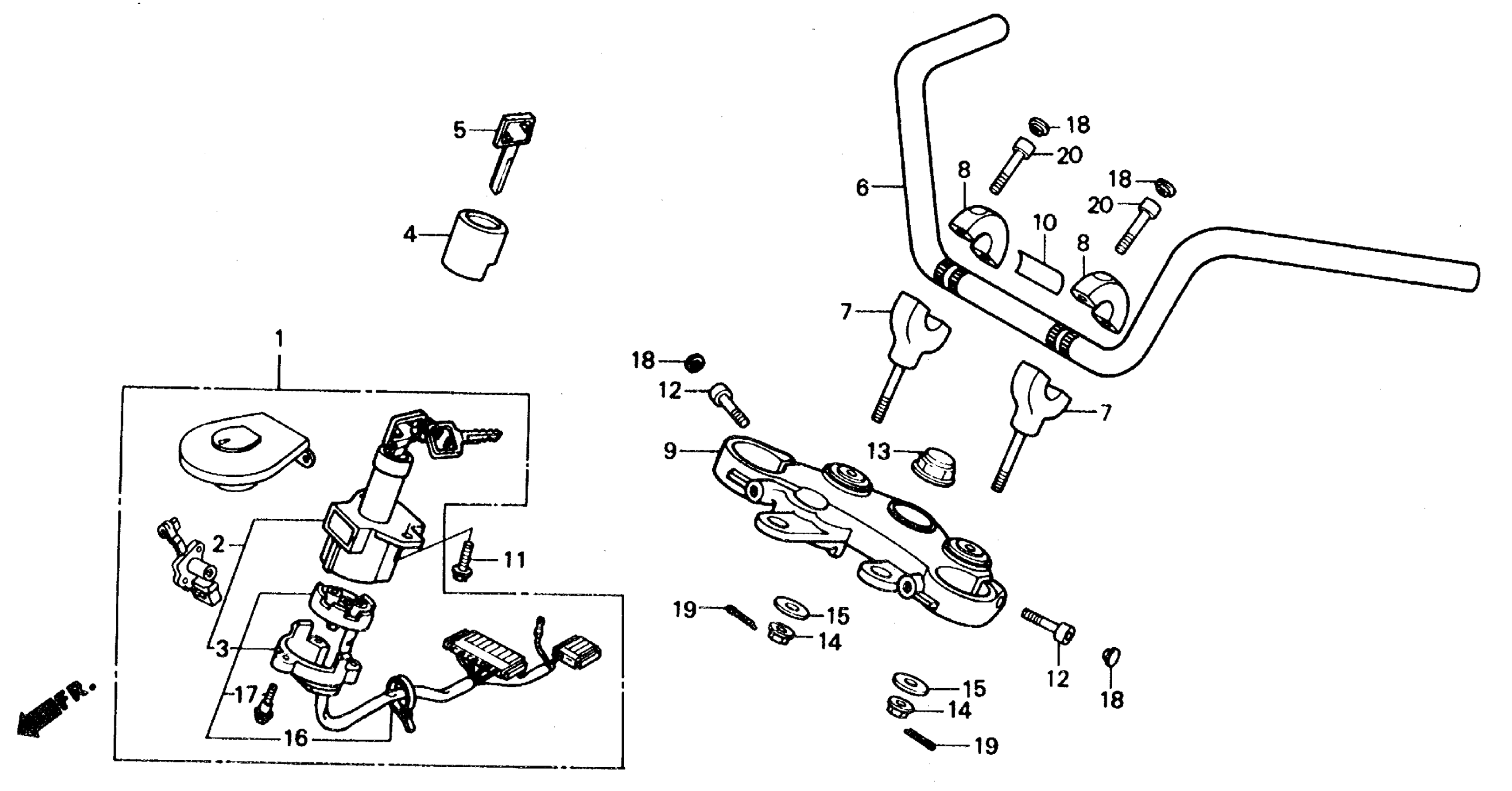 Honda VT700CA (87) SHADOW, JPN, VIN# JH2RC190-HM300001 TO JH2RC190-HM303205 HANDLEBAR Diagram