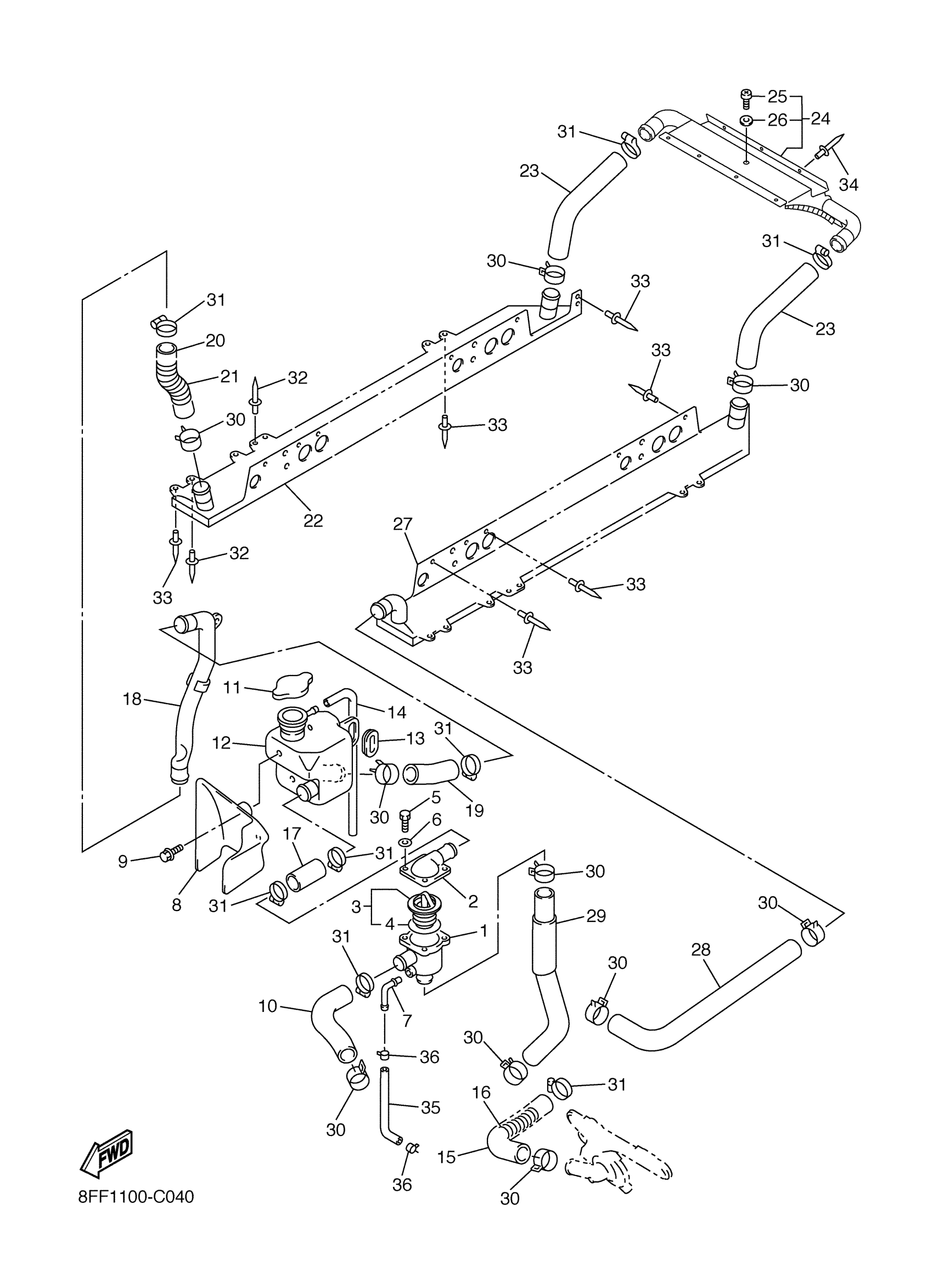 Yamaha VT70J (VENTURE 700) 8FF1 2004 RADIATOR HOSE Diagram