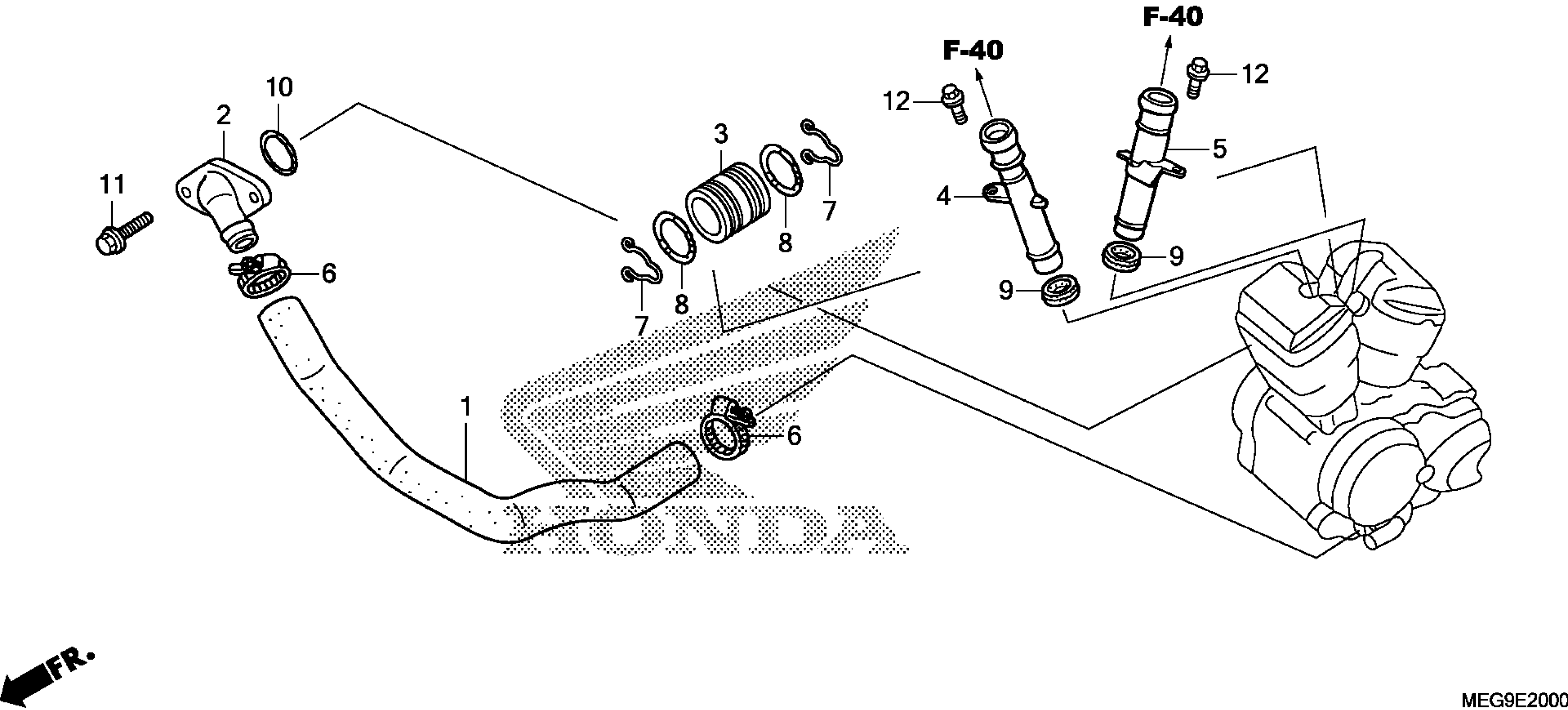 Honda VT750C2BA (11) SHADOW PHANTOM, JPN, VIN# JH2RC537-BK100001 TO JH2RC537-BK199999 WATER PIPE Diagram