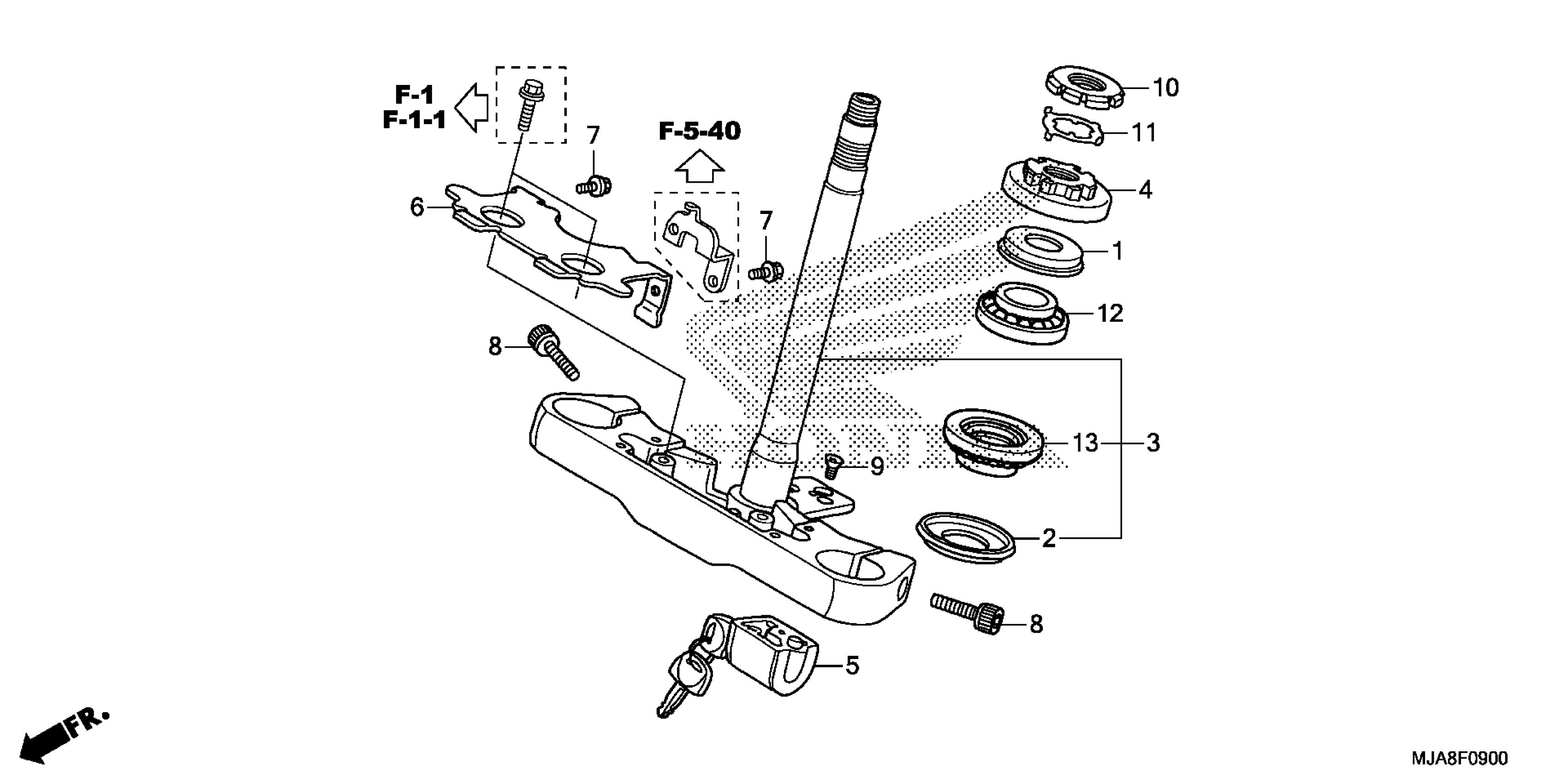 Honda VT750C2BA (14) SHADOW PHANTOM, JPN, VIN# JH2RC537-EK400001 STEERING STEM (1) Diagram